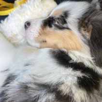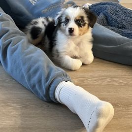 We had a great experience with getting our puppy from Carrie and Aussies of Circle H. You can tell that she really loves and cares for her dogs just by looking at her Facebook or Instagram. She would send us weekly updates with either a photo or video of our boy. Carrie goes above and beyond as a breeder with all the health testing she has done and the personality tests that she does with each puppy to let you know their strengths and weaknesses. For only being 8 weeks old our boy is so laid back and so well behaved. We are so happy with our little boy and I will definitely recommend Carrie and her family for anyone looking for an Australian Shepherd!