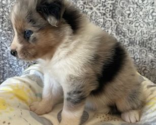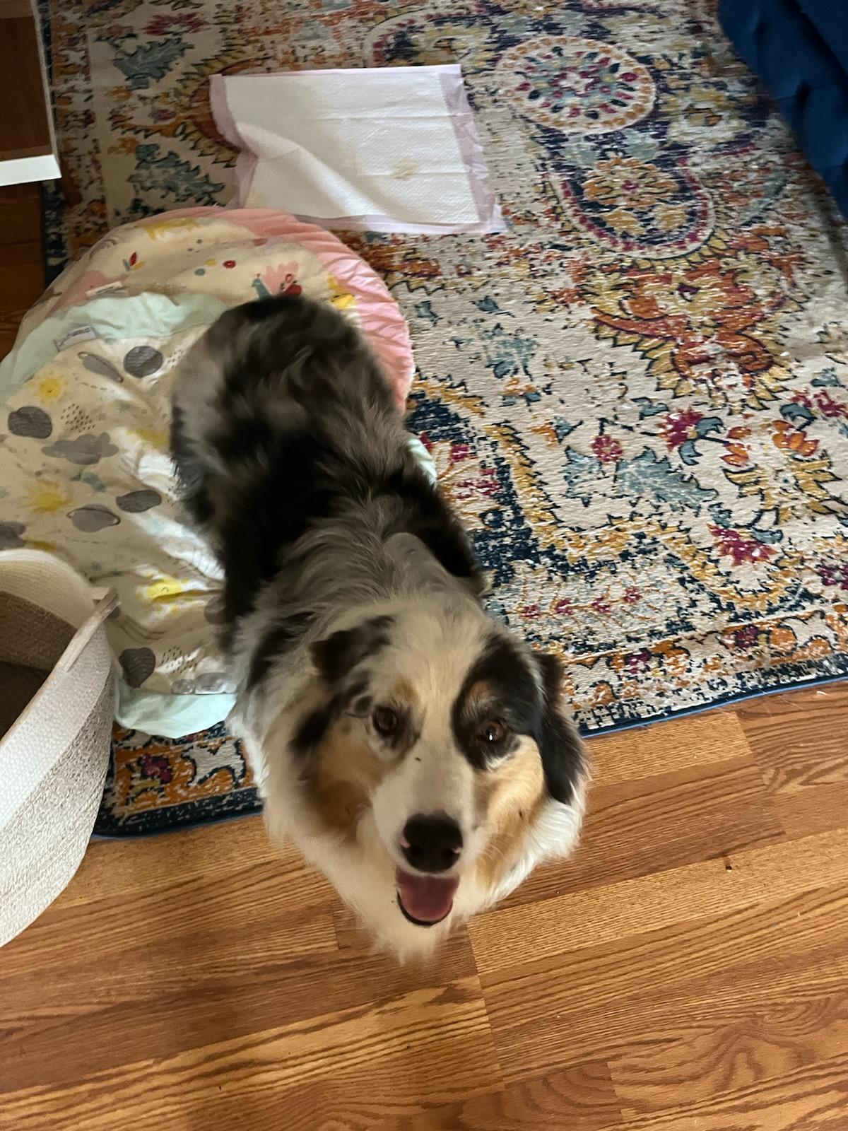 Damsel is a female Australian Shepherd. Carefully selected as a great representative of her breed, Melissa decided to make her part of their program. Melissa has passed Good Dog’s screening process, which involved a review of their breeding practices, environment, and the mental and physical health of their dogs.