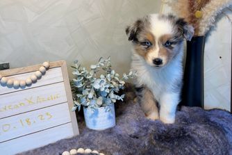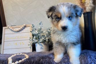 Our puppies include black, red merle, blue merle, and red. Colors will vary depending on the parent dogs.
