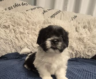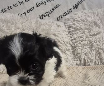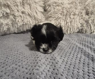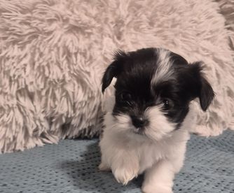 Malshi puppies irresistibly cute, with their fluffy coats, button noses, and bright, expressive eyes. A mix of Maltese and Shih Tzu, these little furballs are playful, cuddly, and full of charm.4 Mal-Shi baby left , 2 males and 2 females