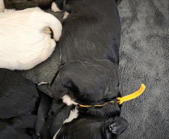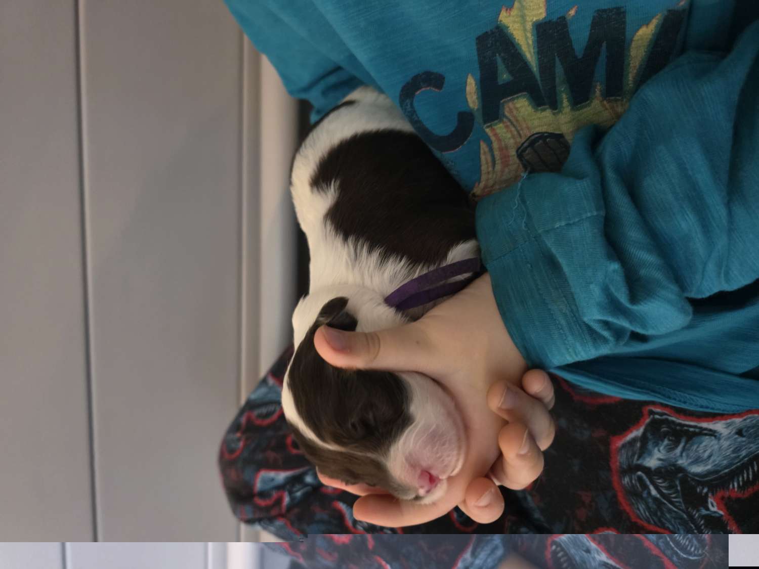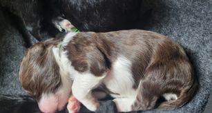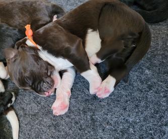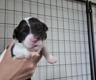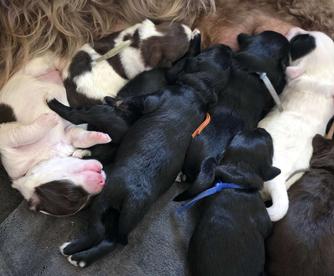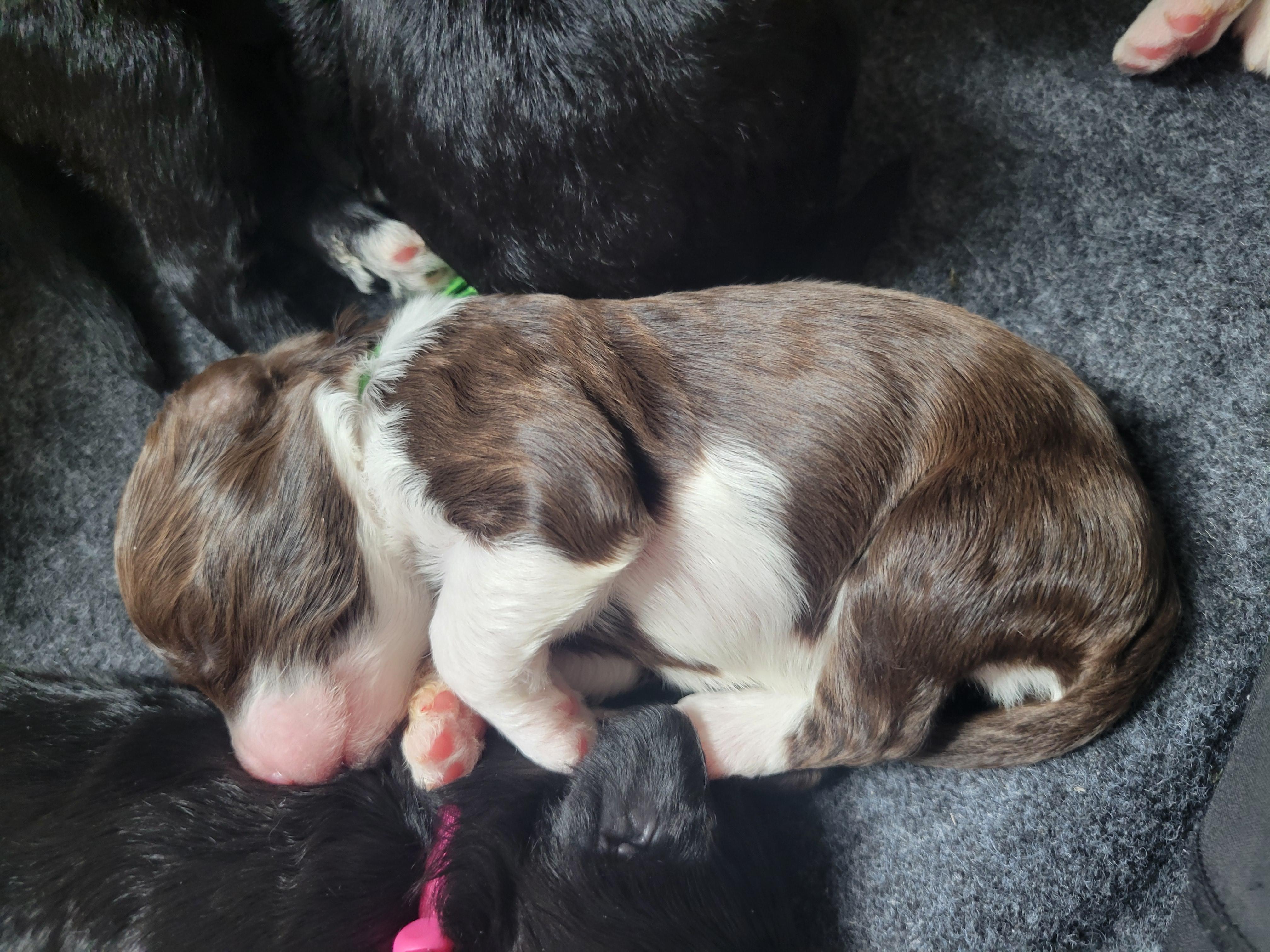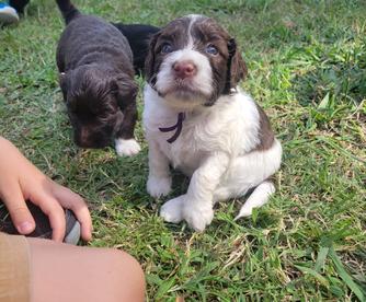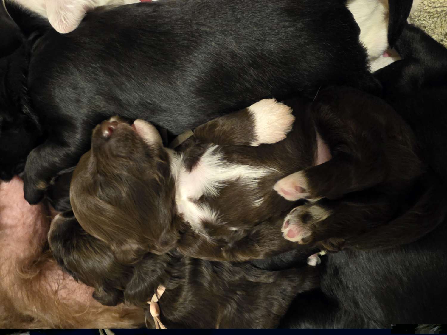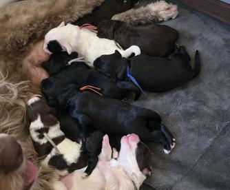 Our puppies include black and white, brown and white, black, and brown. Colors will vary depending on the parent dogs.