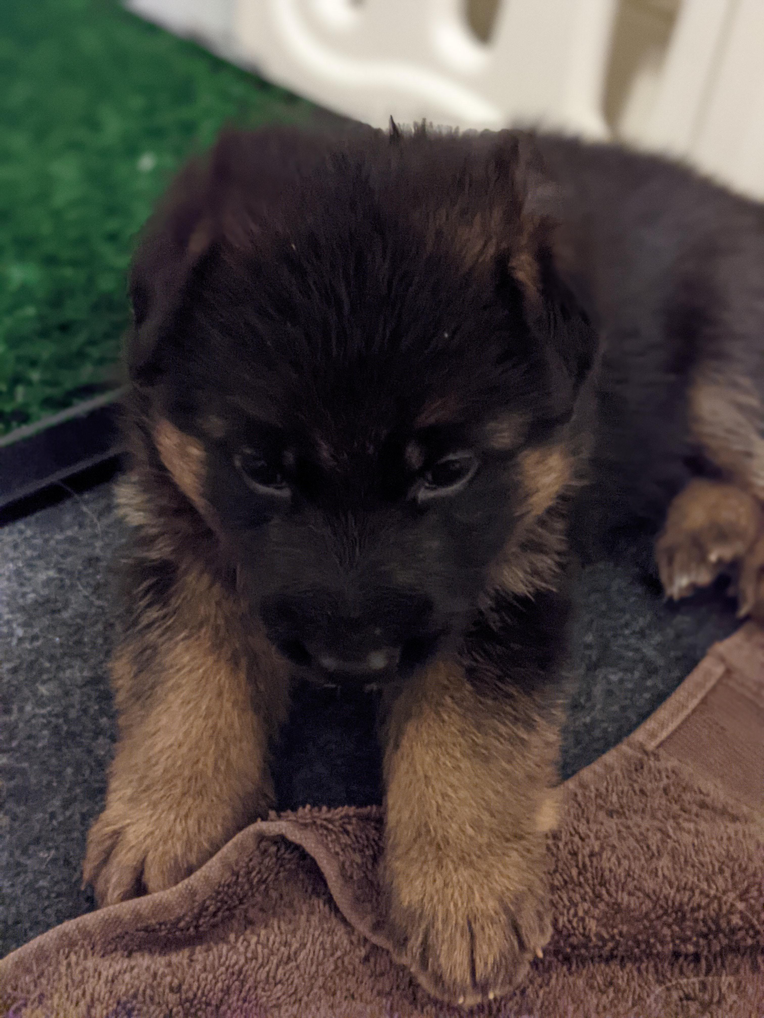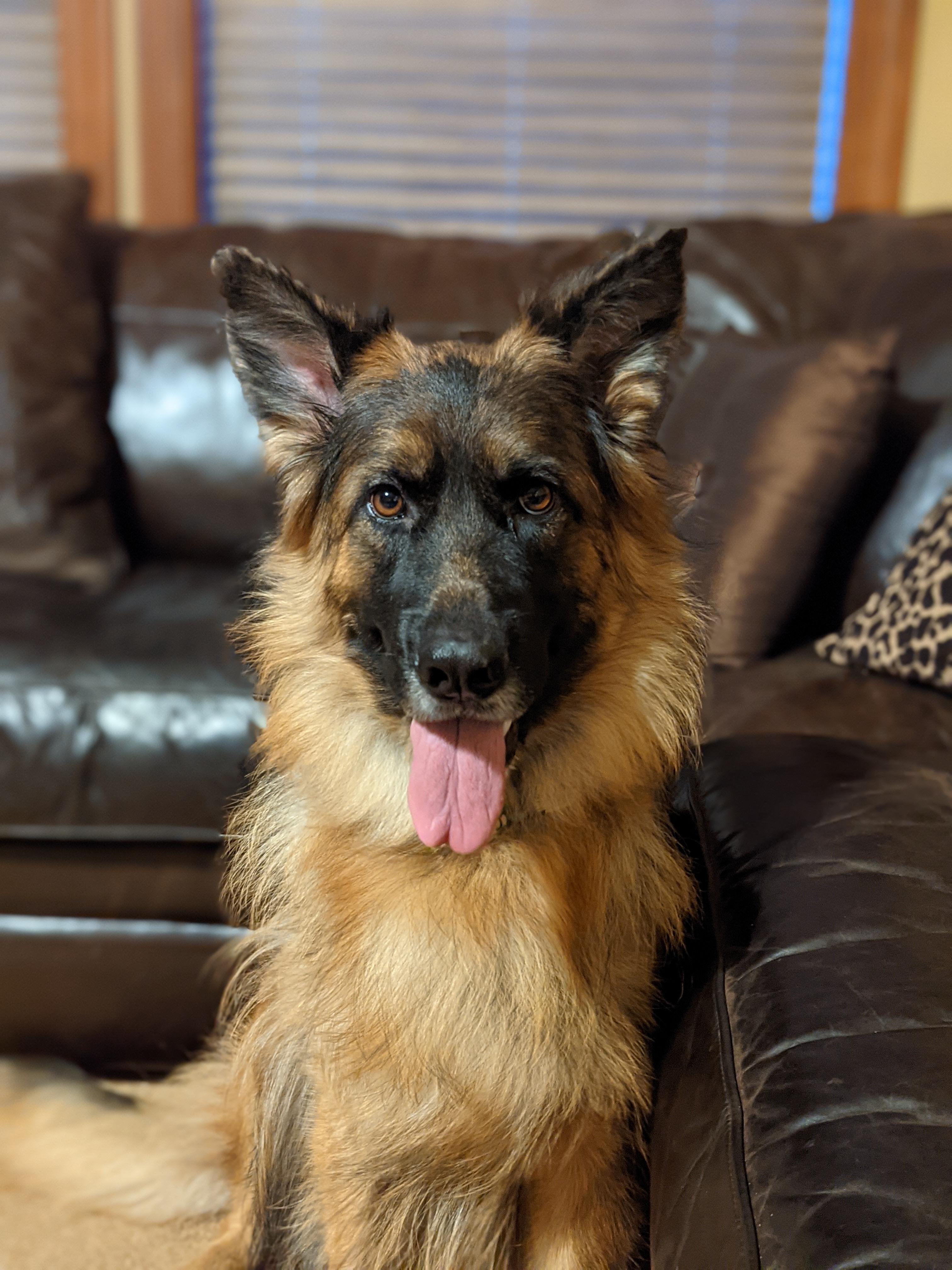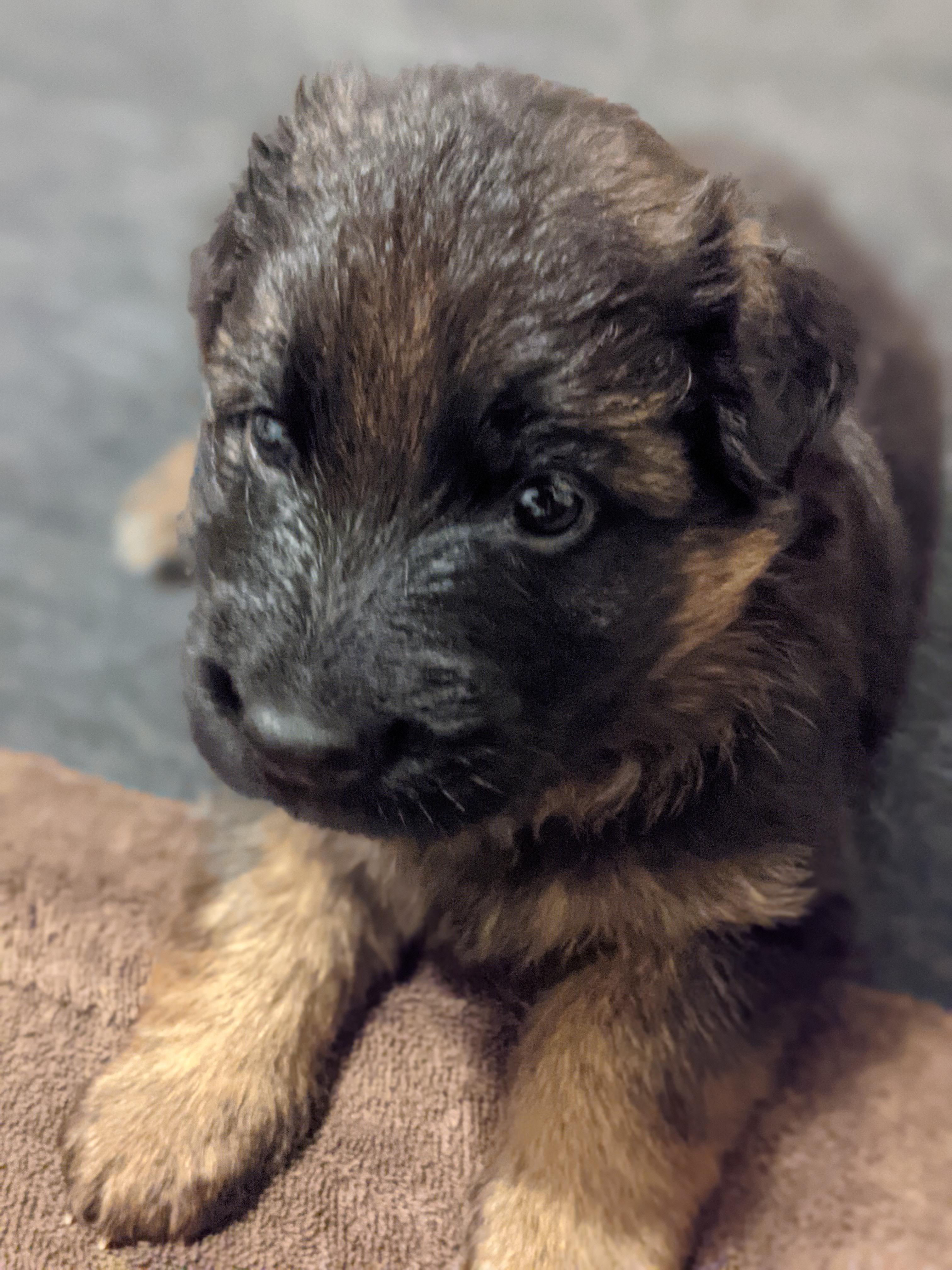 Breeze is a future breeding female. She has the most stable temperament and is very loving. She is a Black and Red, long coat girl with deep, rich colors.