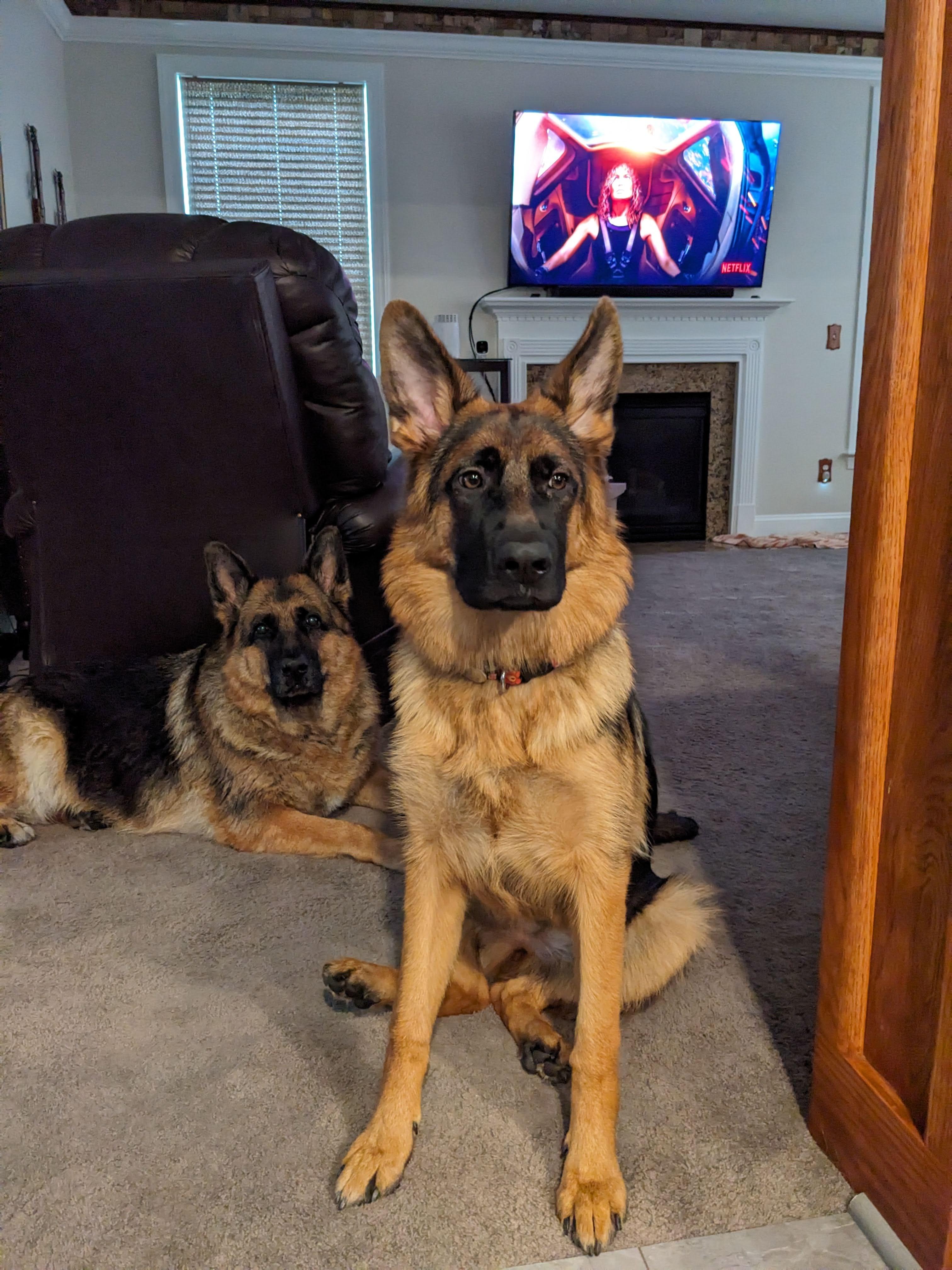 We carefully plan our litters using a “Selective Breeding” process that involves selection of the best possible match to bring out the most desirable characteristics in our German Shepherd Dogs. We invest in the use of a highly recommended and proven stud who is not only Titled with the highest Schutzhund Titles but is the progeny of World Championship title holders.
