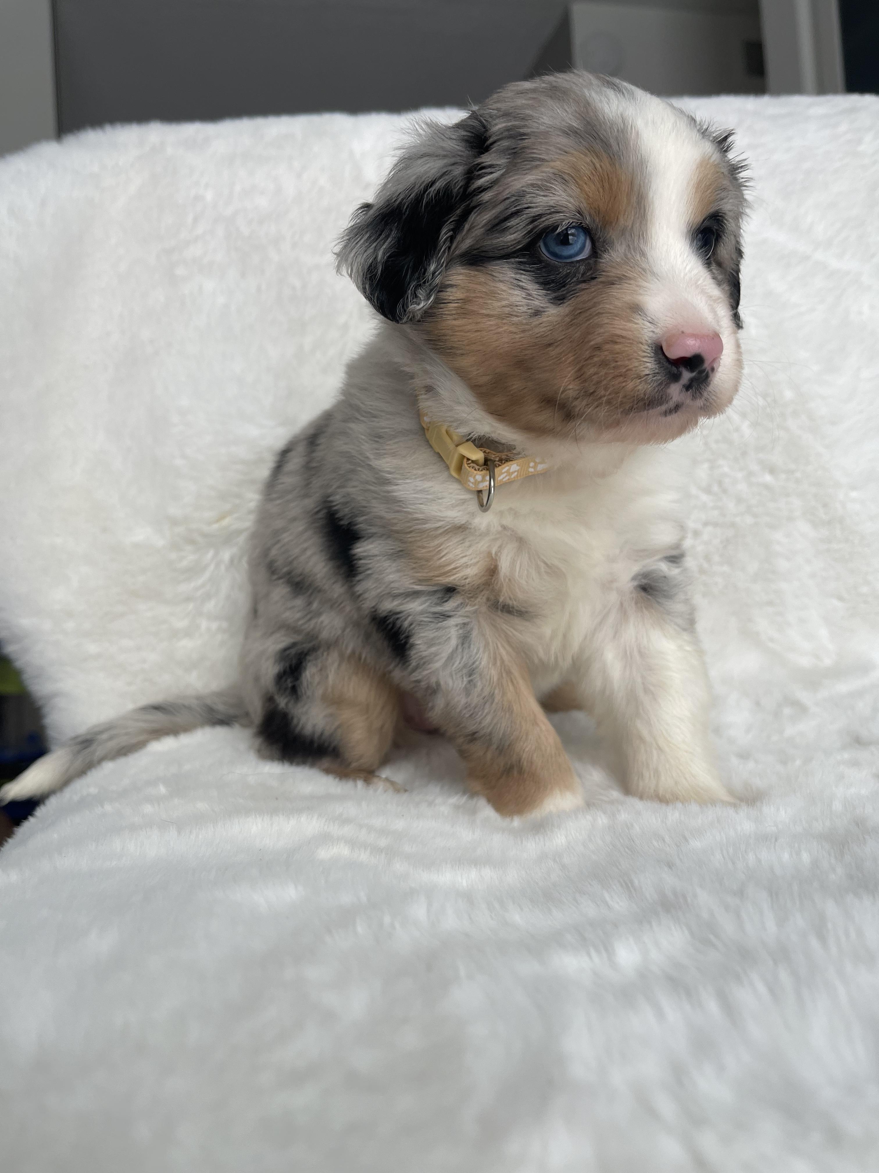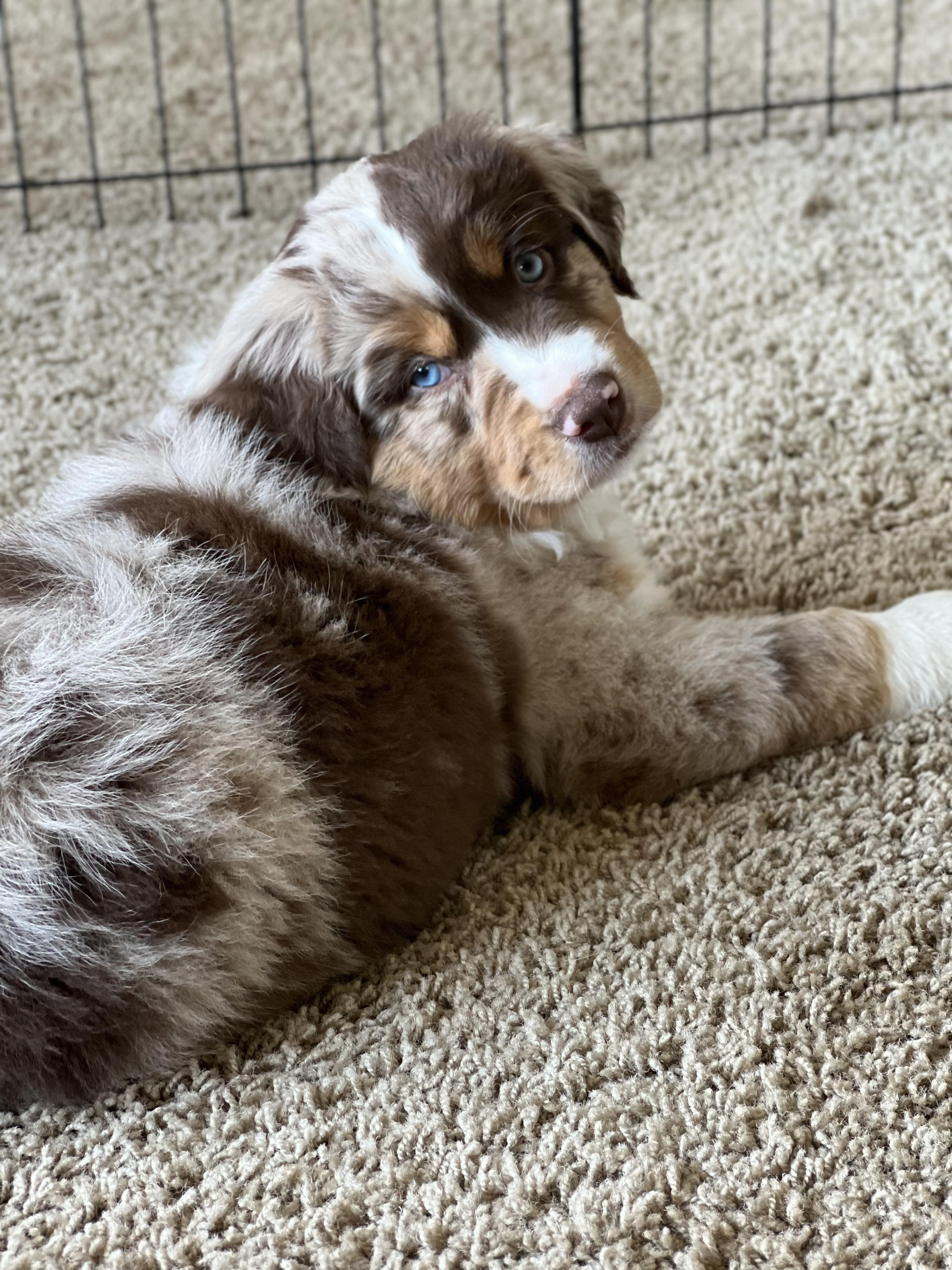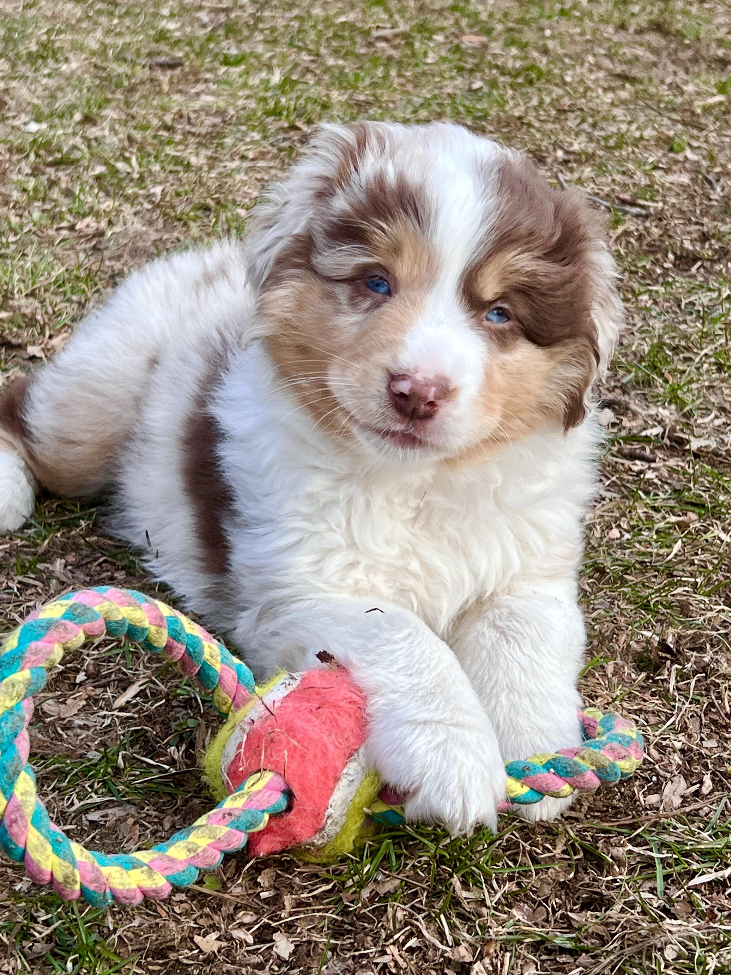 Our puppies include blue merle, red merle, red, and black. Colors will vary depending on the parent dogs.