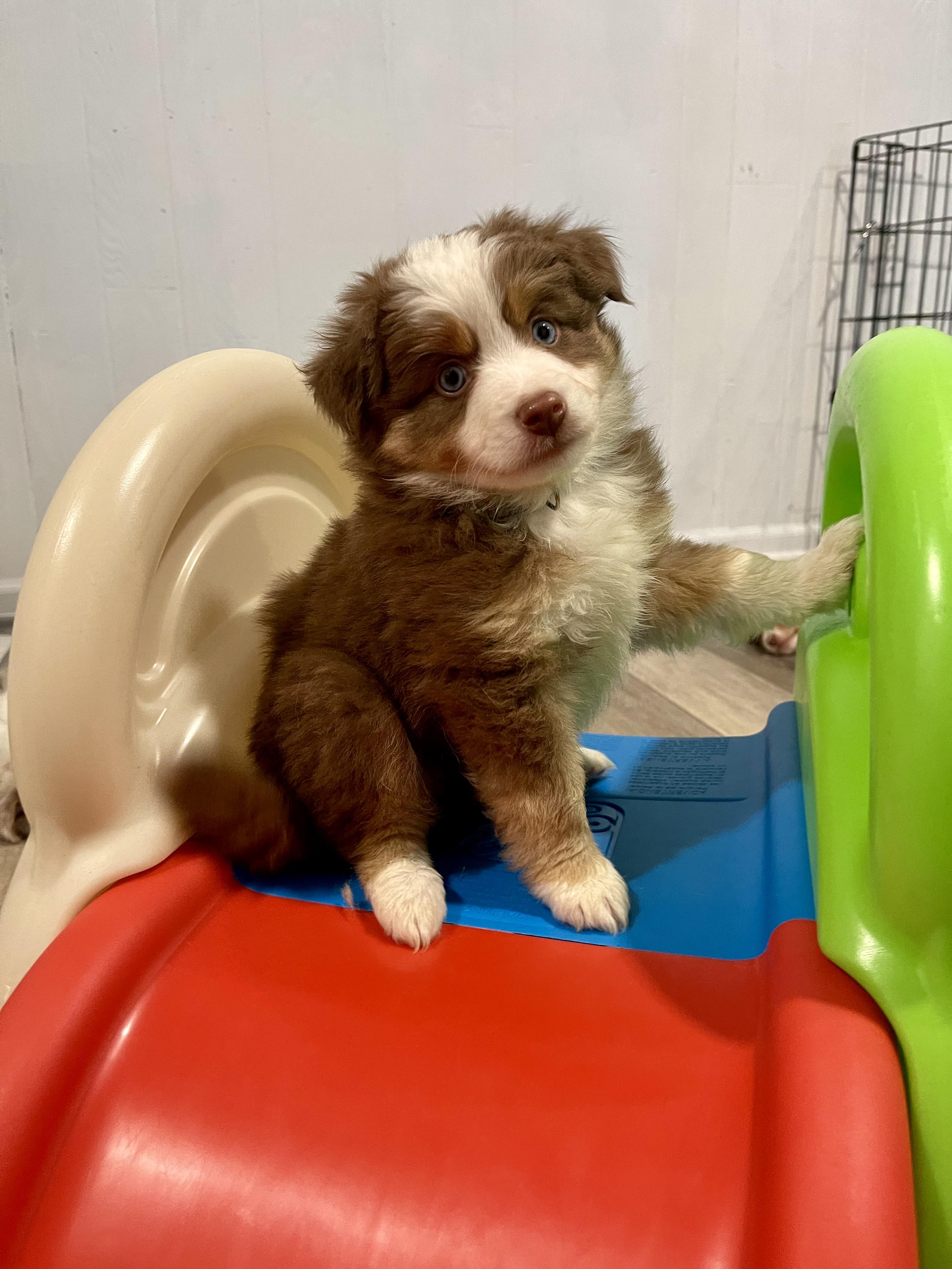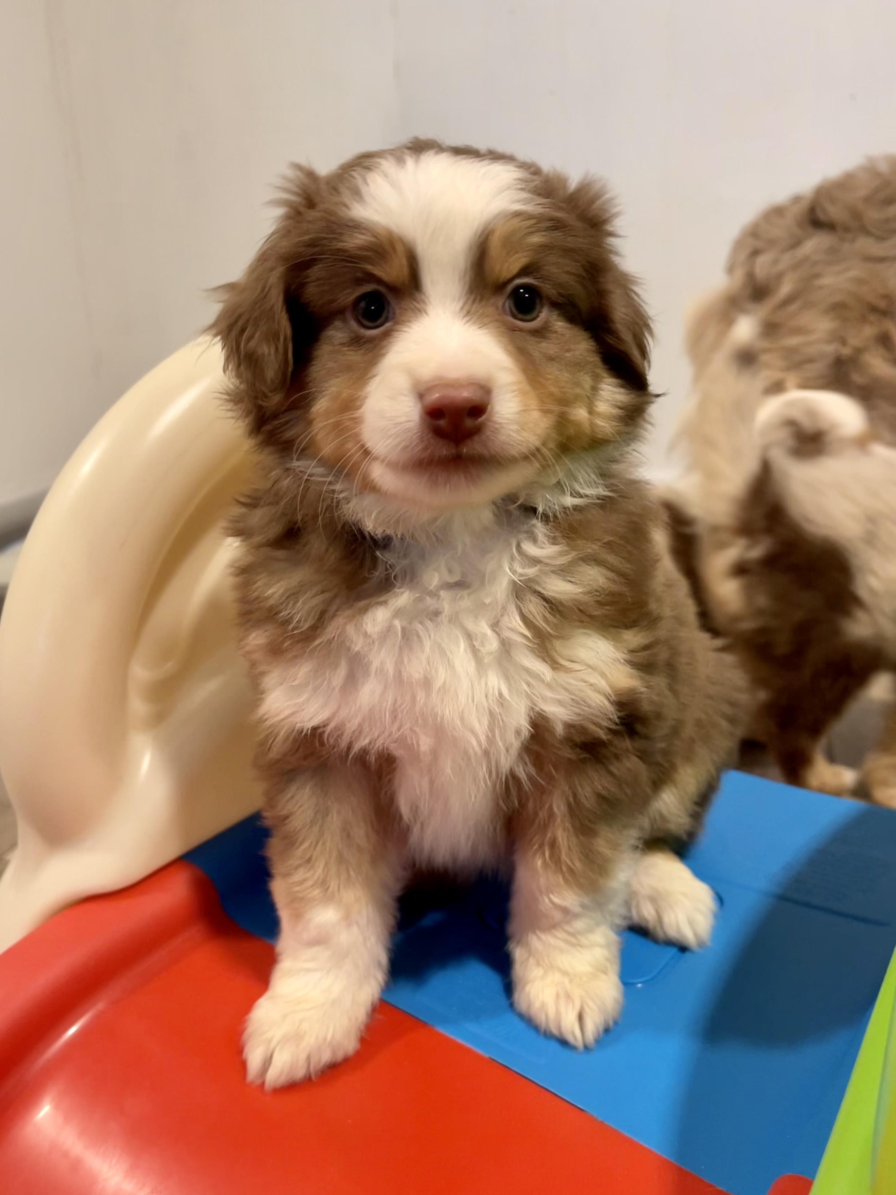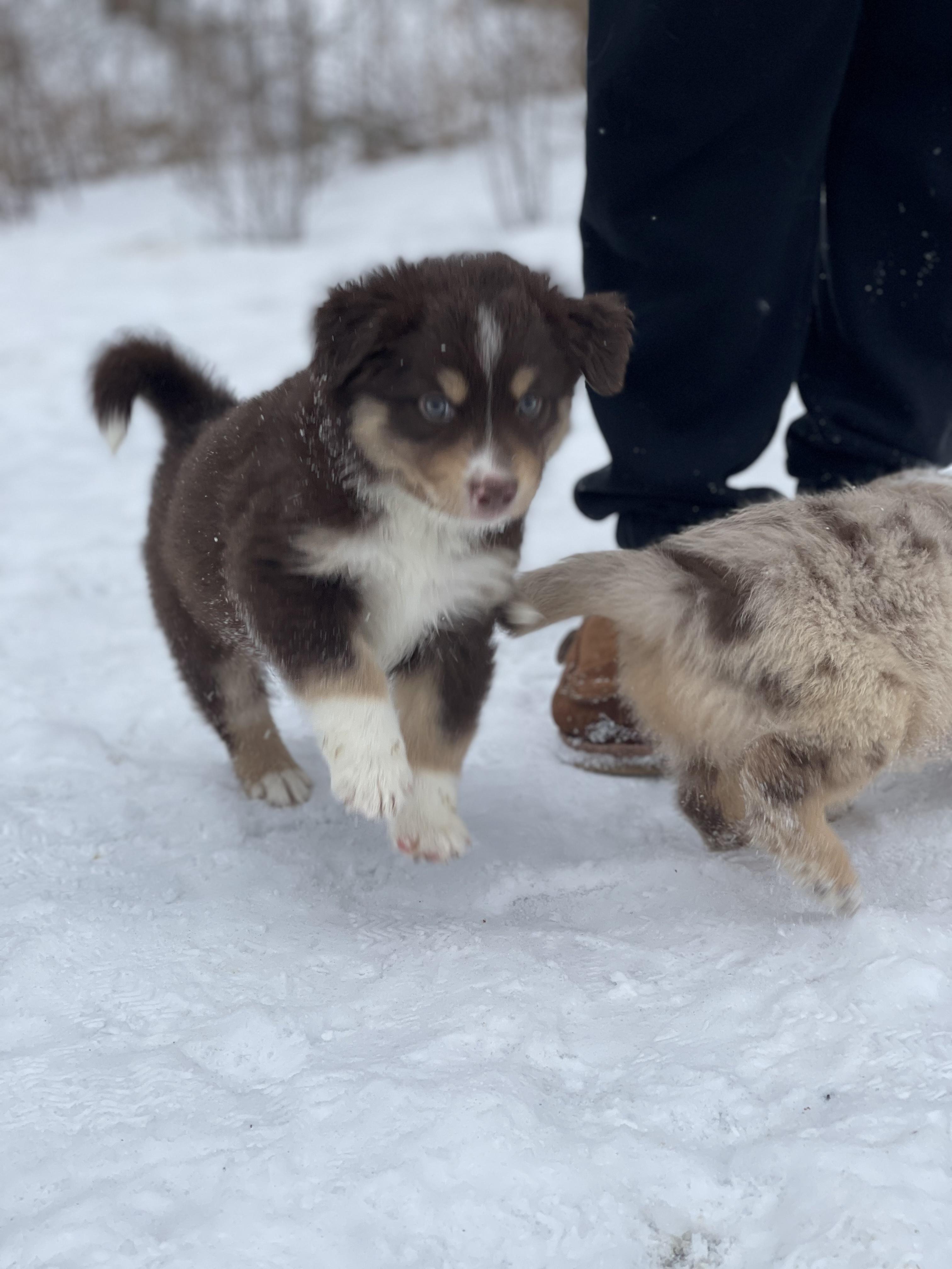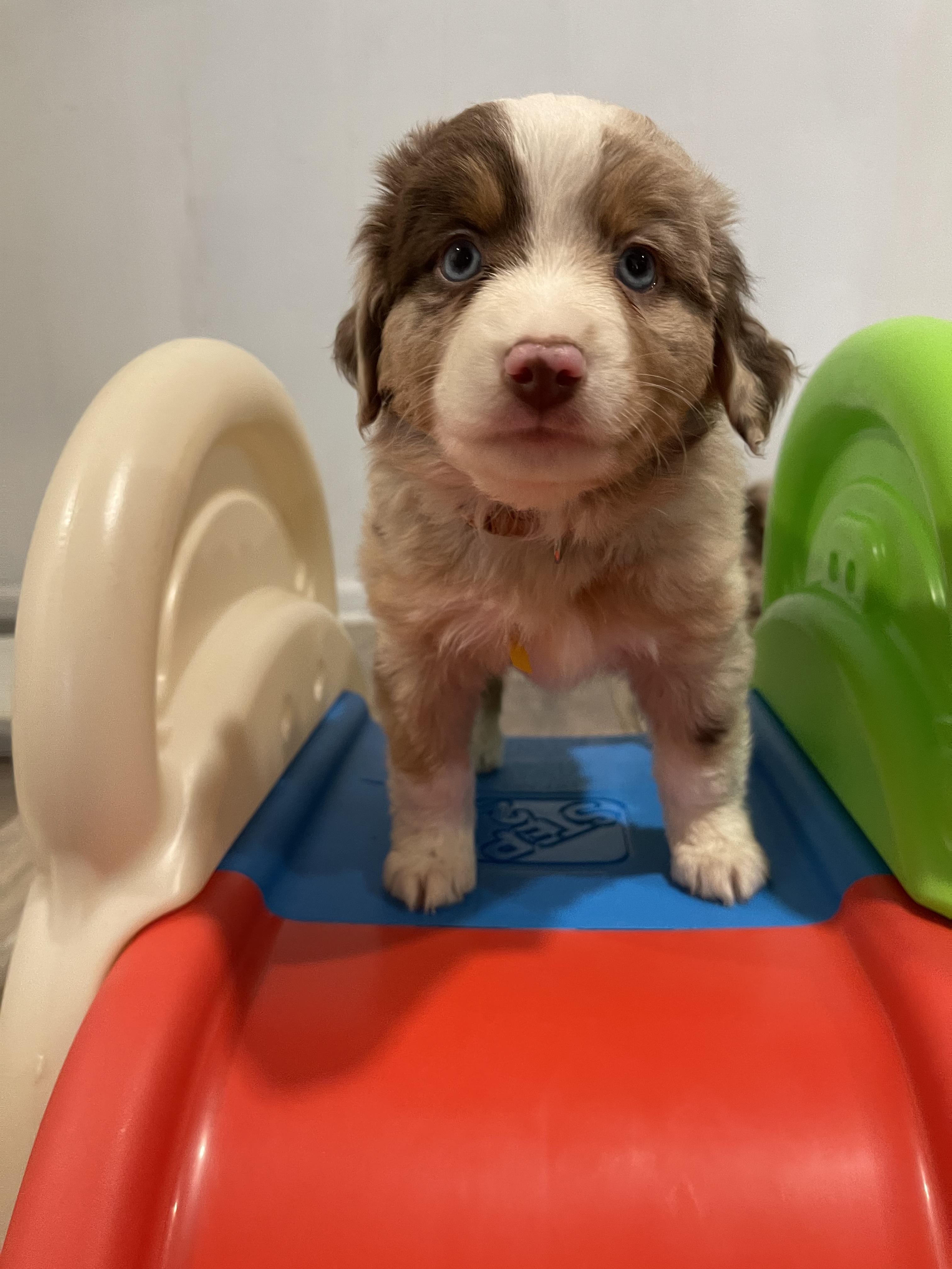Our puppies include blue merle, red merle, red, and black. Colors will vary depending on the parent dogs.