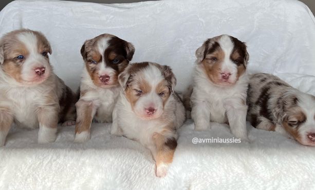 I'm Alexis & Andy C., the breeder behind AV Mini Aussies located in Michigan. We offer well-tempered, health-tested companion Mini Australian Shepherds. We strive and have proven to improve the breed with each generation. We keep our program small to give each dog and puppy all the attention and care that they require to live happy, healthy and well rounded lives.