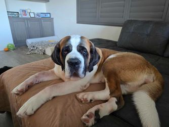 Barnabas is a male Saint Bernard. Carefully selected as a great representative of his breed, Rachel decided to make him part of their program. Rachel has passed Good Dog’s screening process, which involved a review of their breeding practices, environment, and the mental and physical health of their dogs.