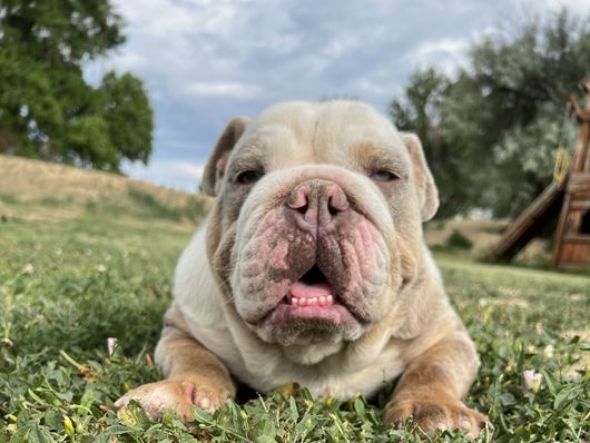 Hulk is a male Bulldog. Carefully selected as a great representative of his breed, Average decided to make him part of their program. Average has passed Good Dog’s screening process, which involved a review of their breeding practices, environment, and the mental and physical health of their dogs.