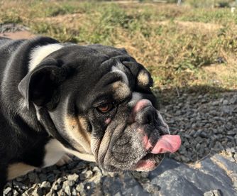 Raven is a female Bulldog. Carefully selected as a great representative of her breed, Average decided to make her part of their program. Average has passed Good Dog’s screening process, which involved a review of their breeding practices, environment, and the mental and physical health of their dogs.