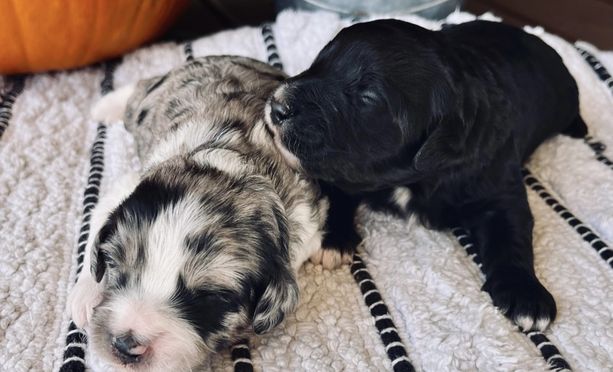 Our puppies include blue merle and black and white. Colors will vary depending on the parent dogs.