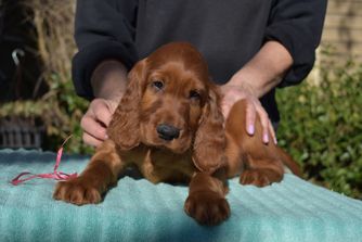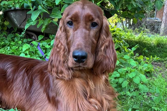 Theo is a male Irish Setter. Carefully selected as a great representative of his breed, Leslie decided to make him part of their program. Leslie has passed Good Dog’s screening process, which involved a review of their breeding practices, environment, and the mental and physical health of their dogs.