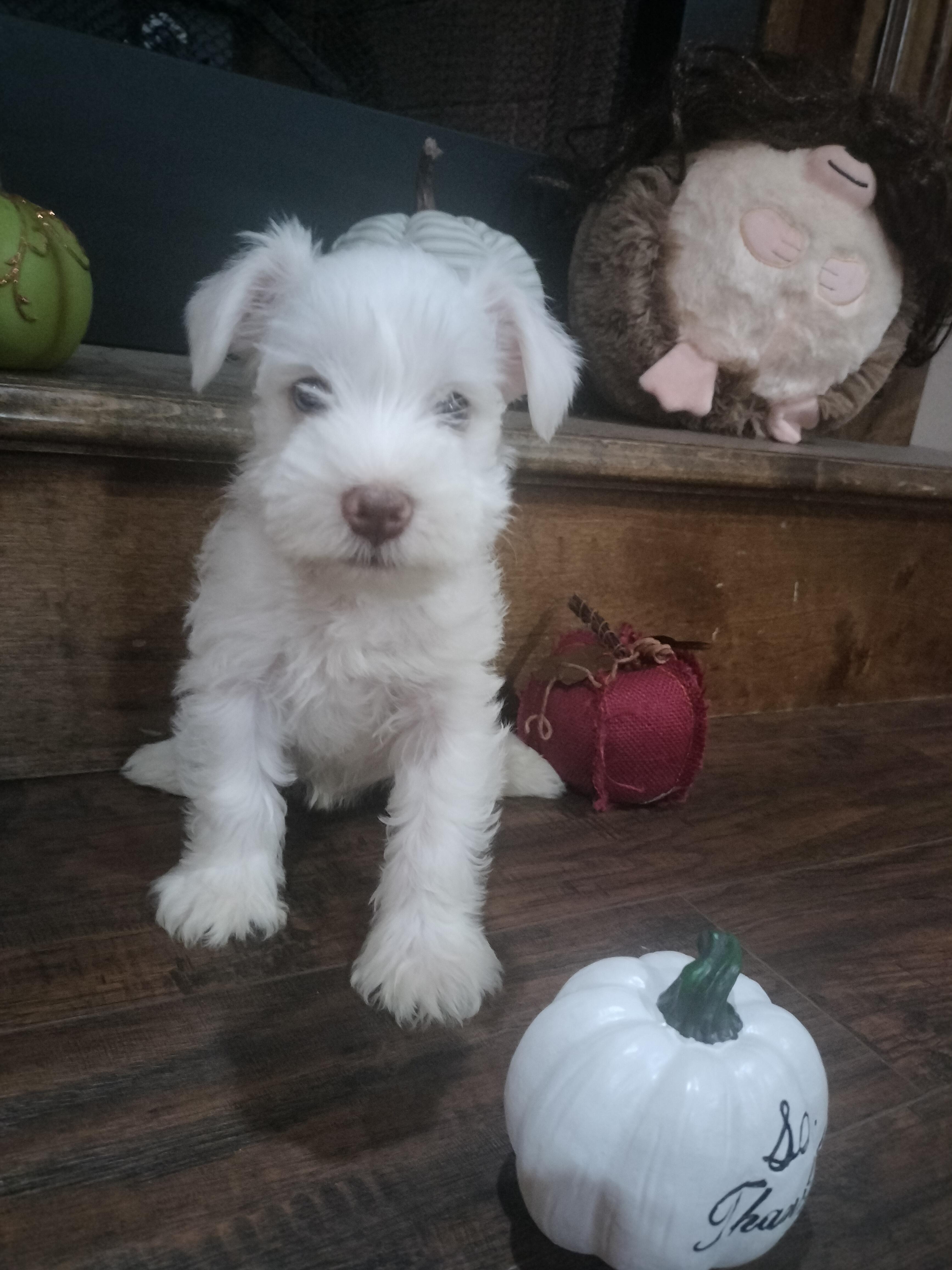 I was very lucky to find the baby that I was looking for through Good Dog. After conducting detailed research, I contacted Amy Brunson, one of the breeders, and she was amazing, reliable, serious, and an excellent communicator. I traveled from Florida to Tulsa, Oklahoma to pick up my little white Schnauzer. Amy did everything in her skillful hands to facilitate the process in a timely and efficient manner. Finally, I met Amy face to face, and her family, at a hotel where I met my little puppy on April 26, for the 1st time. I’m very happy now. I have a “new adorable family member," and she is very healthy, and pretty. I have received many compliments from family and friends, and even during my return flights at the airports. Thank you, Amy, it was a pleasure to receive my puppy from you.