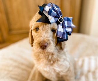 Our Bernedoodle puppies are medium size. Goldendoodle puppies include petite and miniature sizes. Sizes will vary depending on the parent dogs.