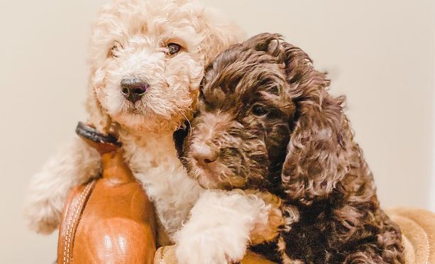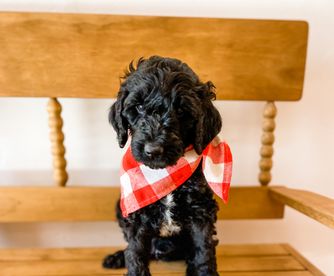 Our Bernedoodle puppies include sable, black, black and white, and tri-color. Goldendoodle puppies include cream, apricot, red, chocolate, and parti. Colors will vary depending on the parent dogs.