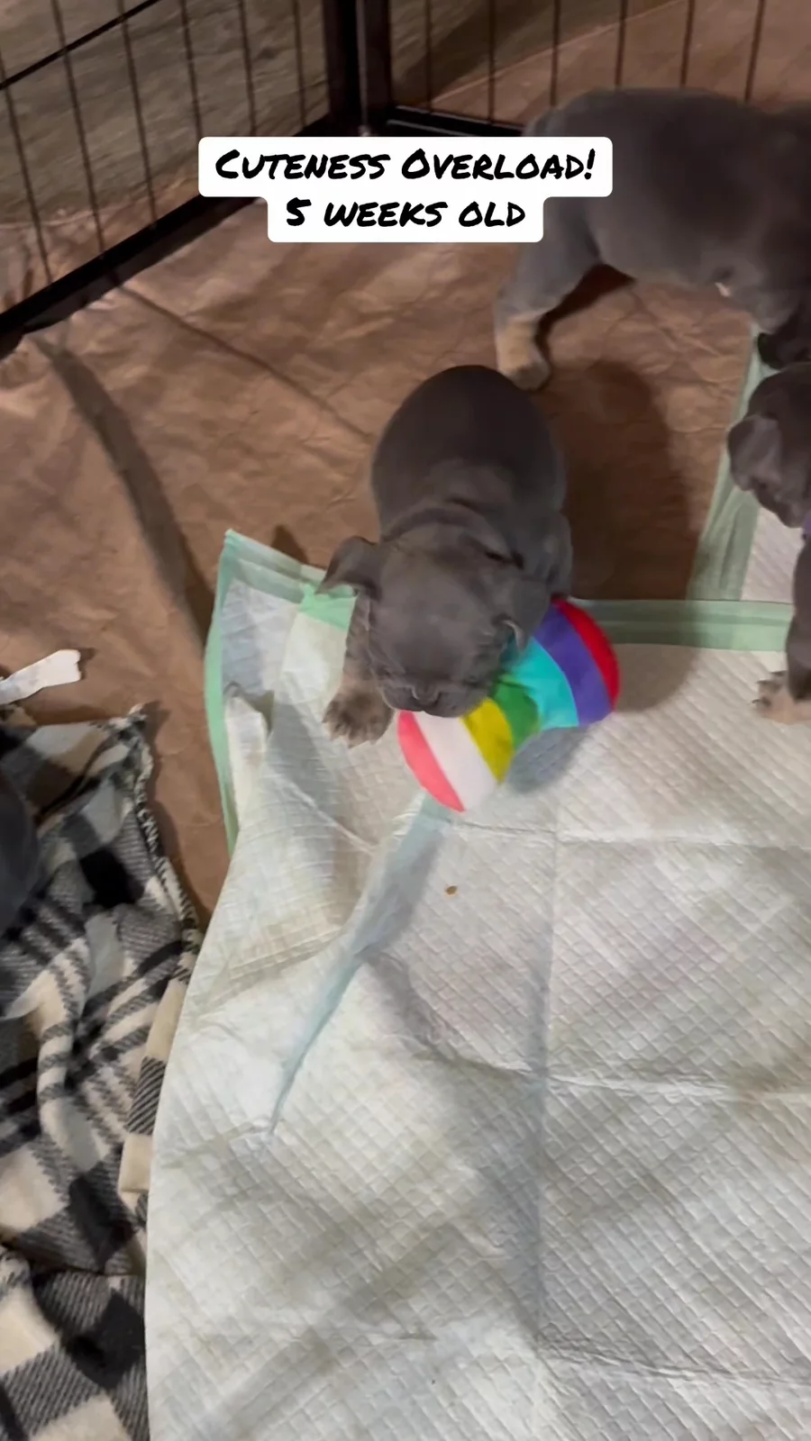5 weeks old. They are eating soft puppy food and playing with toys 🐾