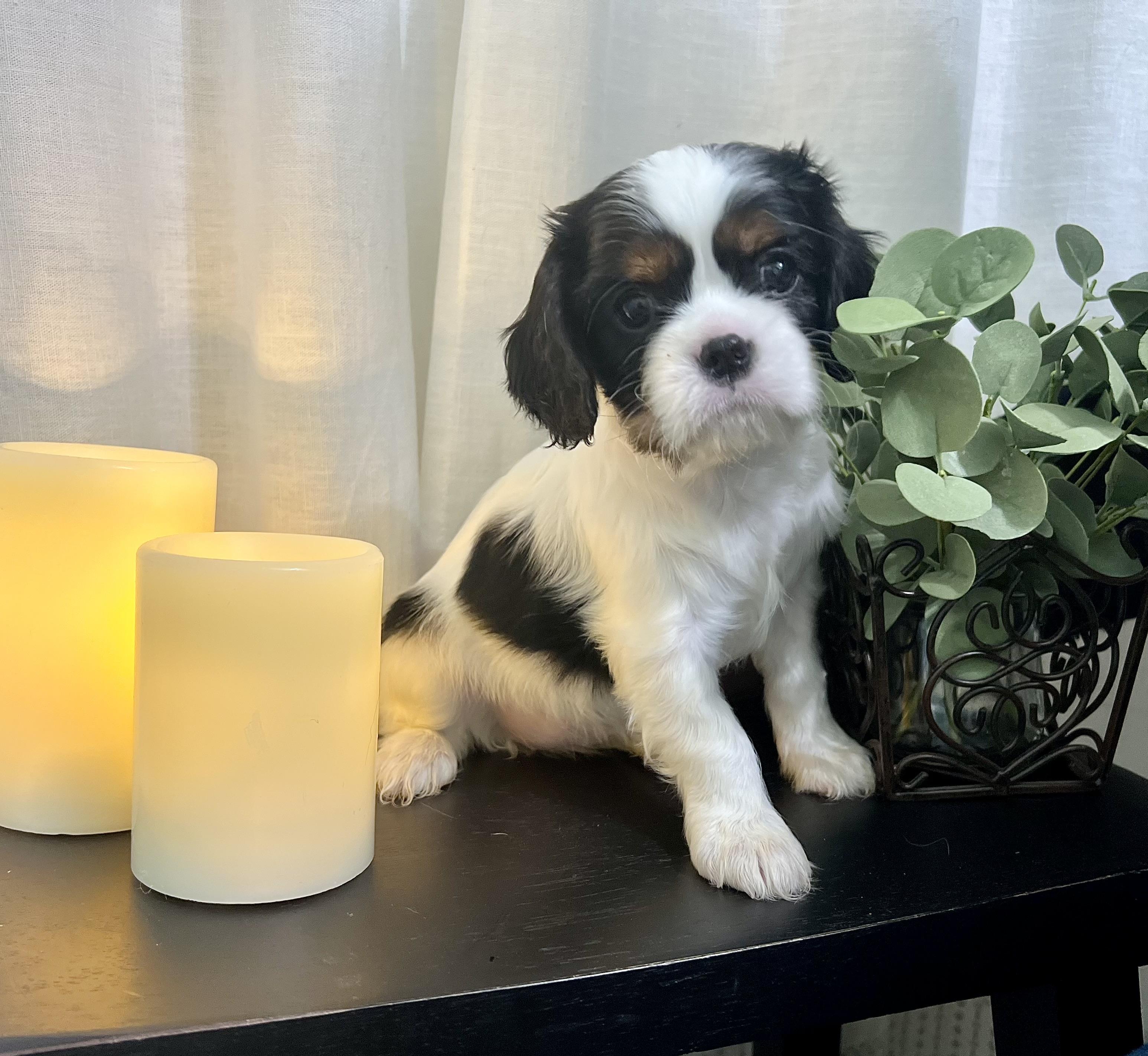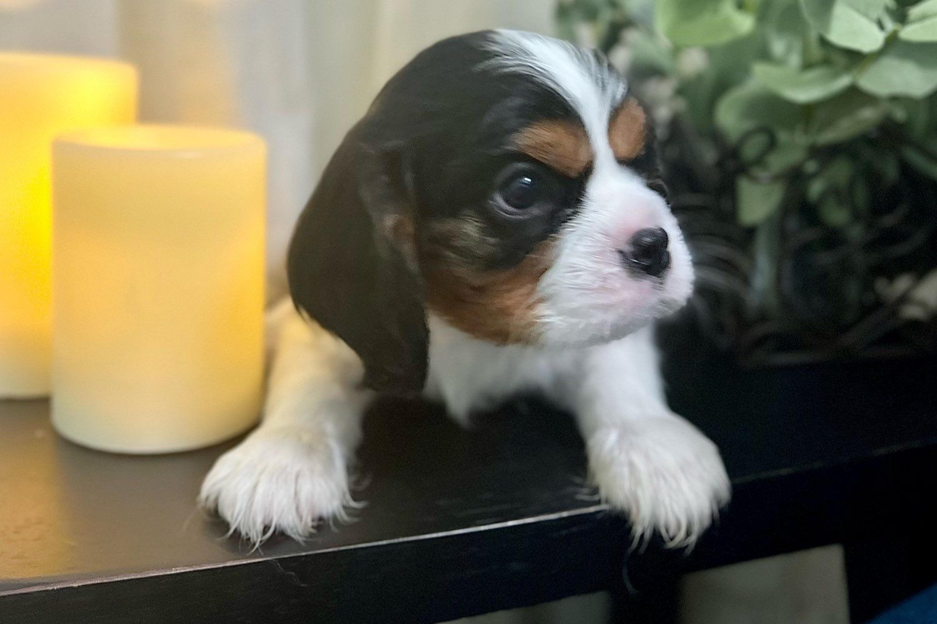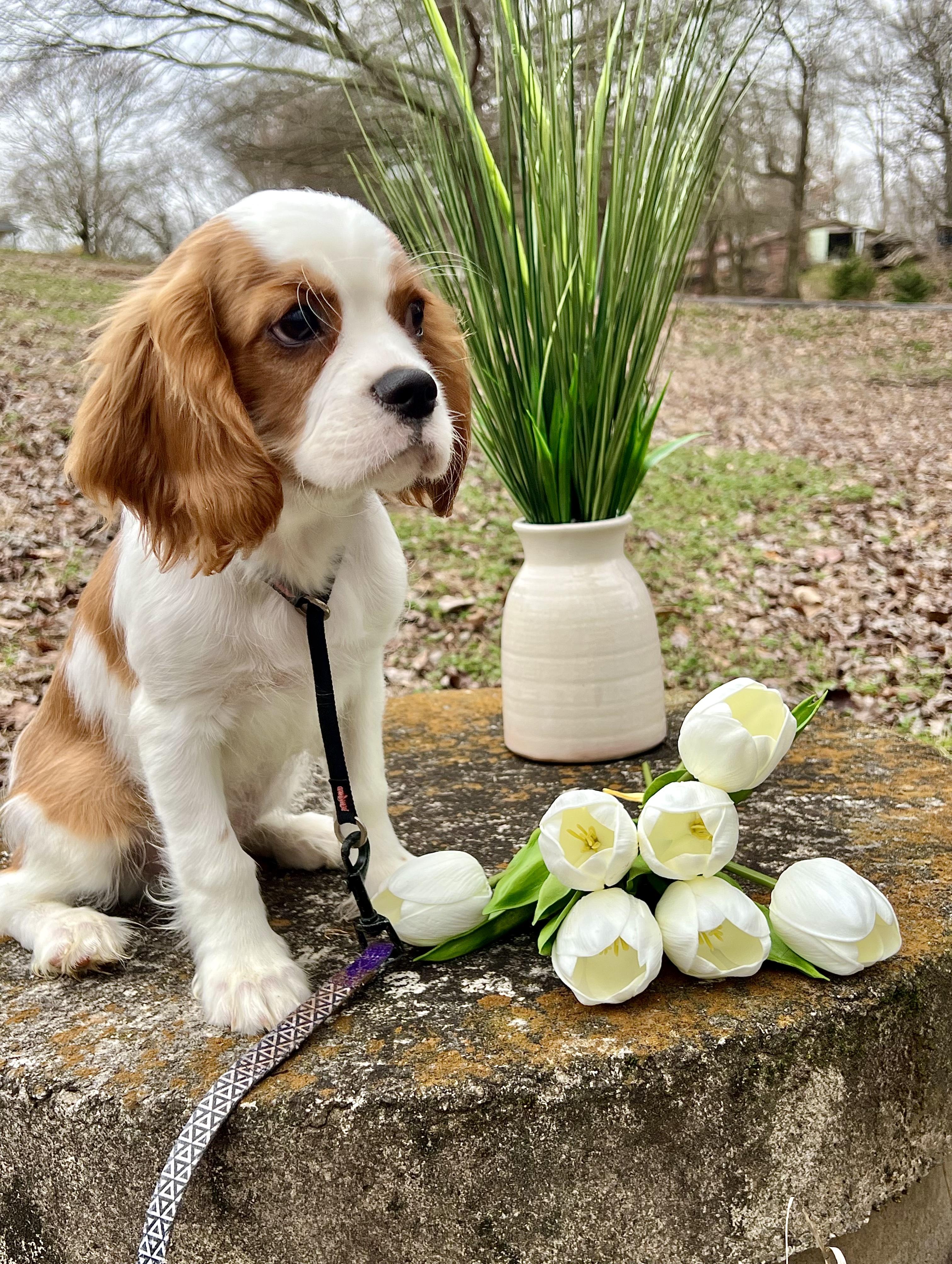 Our puppies include blenheim and tri-color. Colors will vary depending on the parent dogs.