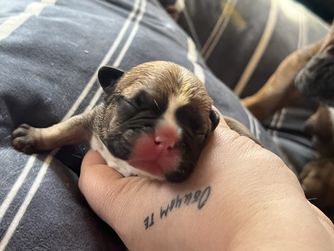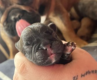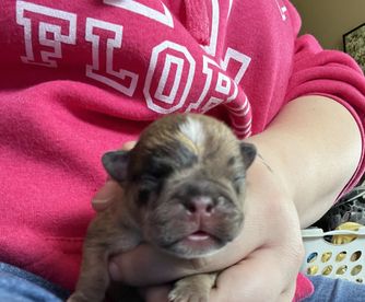 Stella is a female French Bulldog. Carefully selected as a great representative of her breed, Mckenzie decided to make her part of their program. Mckenzie has passed Good Dog’s screening process, which involved a review of their breeding practices, environment, and the mental and physical health of their dogs.