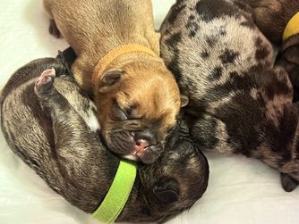 Puppy prices include a $500 non-refundable deposit and between $300 - $1,900 final payment, before taxes & fees.