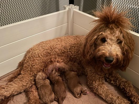 Liberty is a female Goldendoodle. Carefully selected as a great representative of her breed, Shawna decided to make her part of their program. Shawna has passed Good Dog’s screening process, which involved a review of their breeding practices, environment, and the mental and physical health of their dogs.
