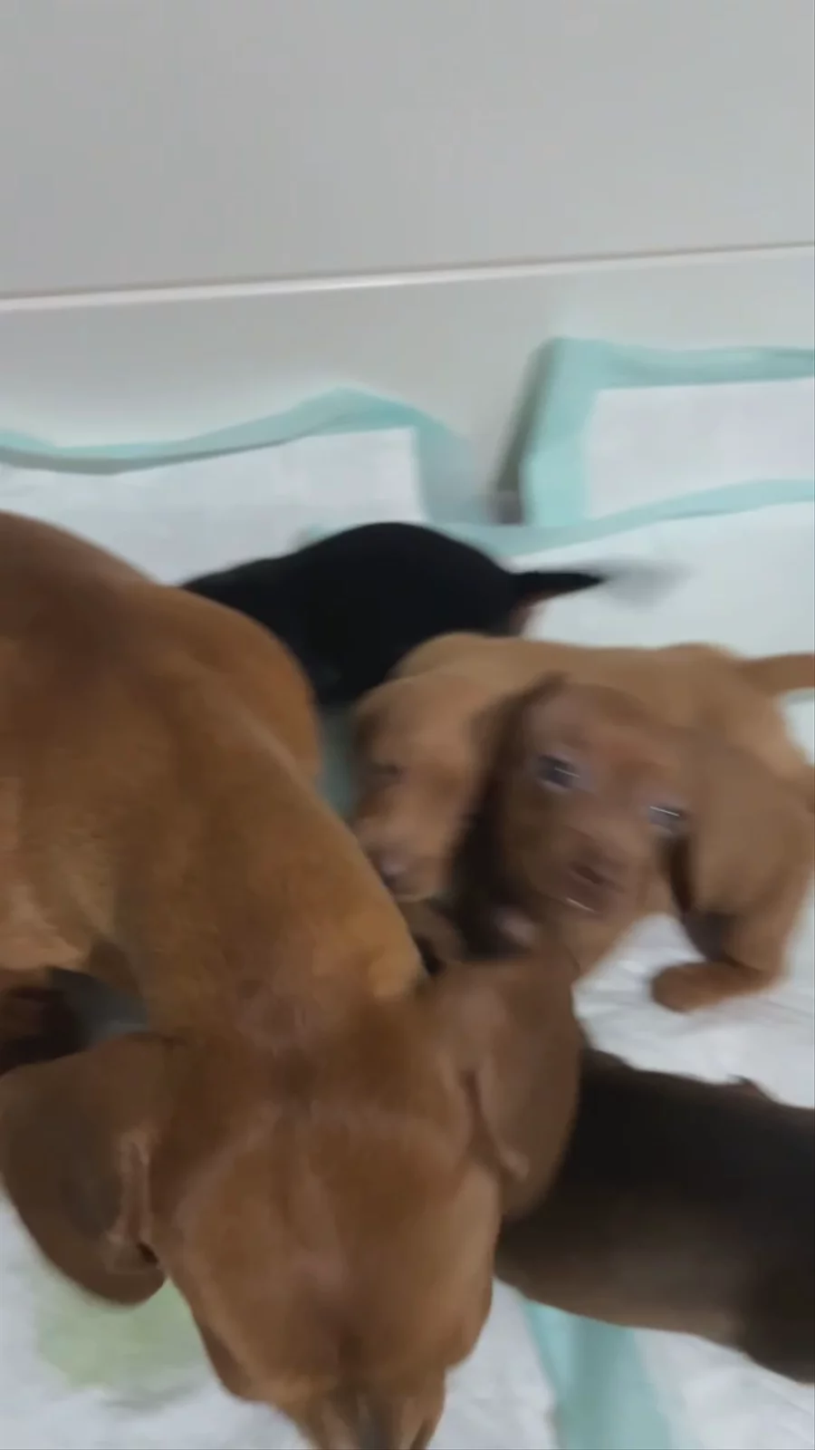 Look at them go! Puppies are 3 weeks old today! All puppies are now on their paws and starting to play fight each other.