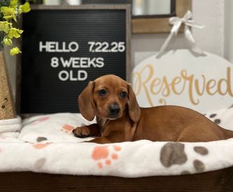 Dolly is a female Dachshund. Carefully selected as a great representative of her breed, Heather decided to make her part of their program. Heather has passed Good Dog’s screening process, which involved a review of their breeding practices, environment, and the mental and physical health of their dogs.