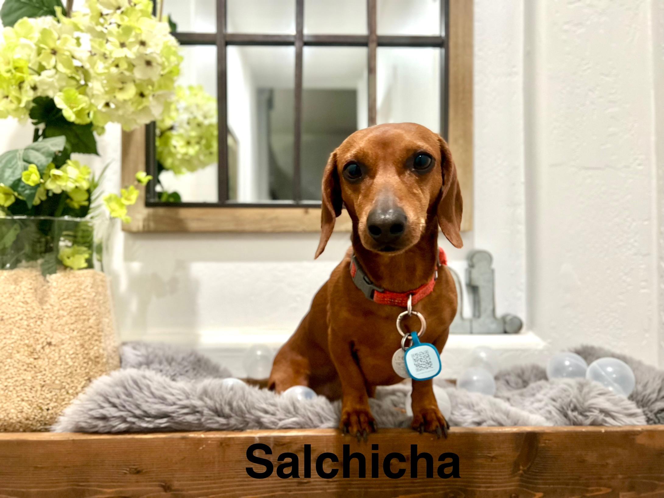 Chicha is a male Dachshund. Carefully selected as a great representative of his breed, Heather decided to make him part of their program. Heather has passed Good Dog’s screening process, which involved a review of their breeding practices, environment, and the mental and physical health of their dogs.