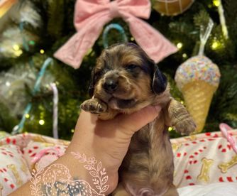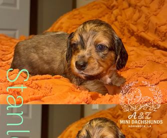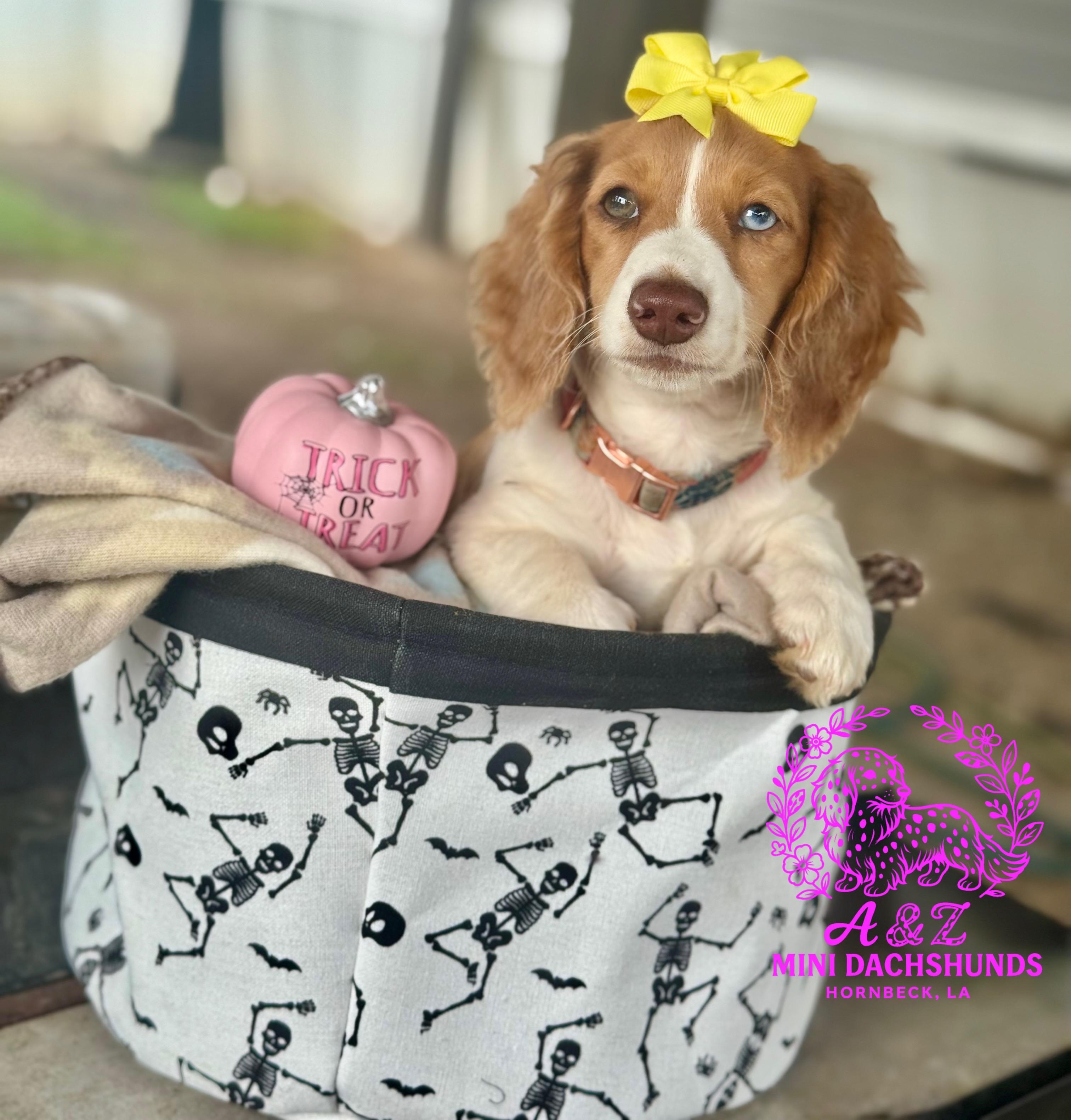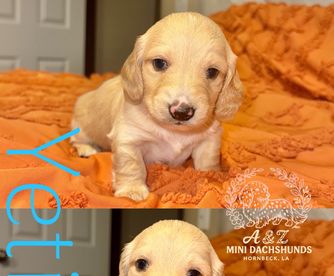 I'm Arial F., the breeder behind A&Z Mini Dachshunds located in Hornbeck, LA. Hey guys! So all our baby’s are raised right in our home with lots of love. All our parents are health tested and we only wanna provide the best. All our baby’s are seen by the vet and microchipped before leaving for their forever family’s.