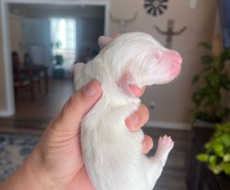 “Hey there! All my pups will be ready for their forever home at 8 weeks of age! They will be seen by a vet with all their shots for their appropriate shots and everything. They will come very spoiled and loved with a puppy pack!❤️. ”