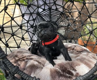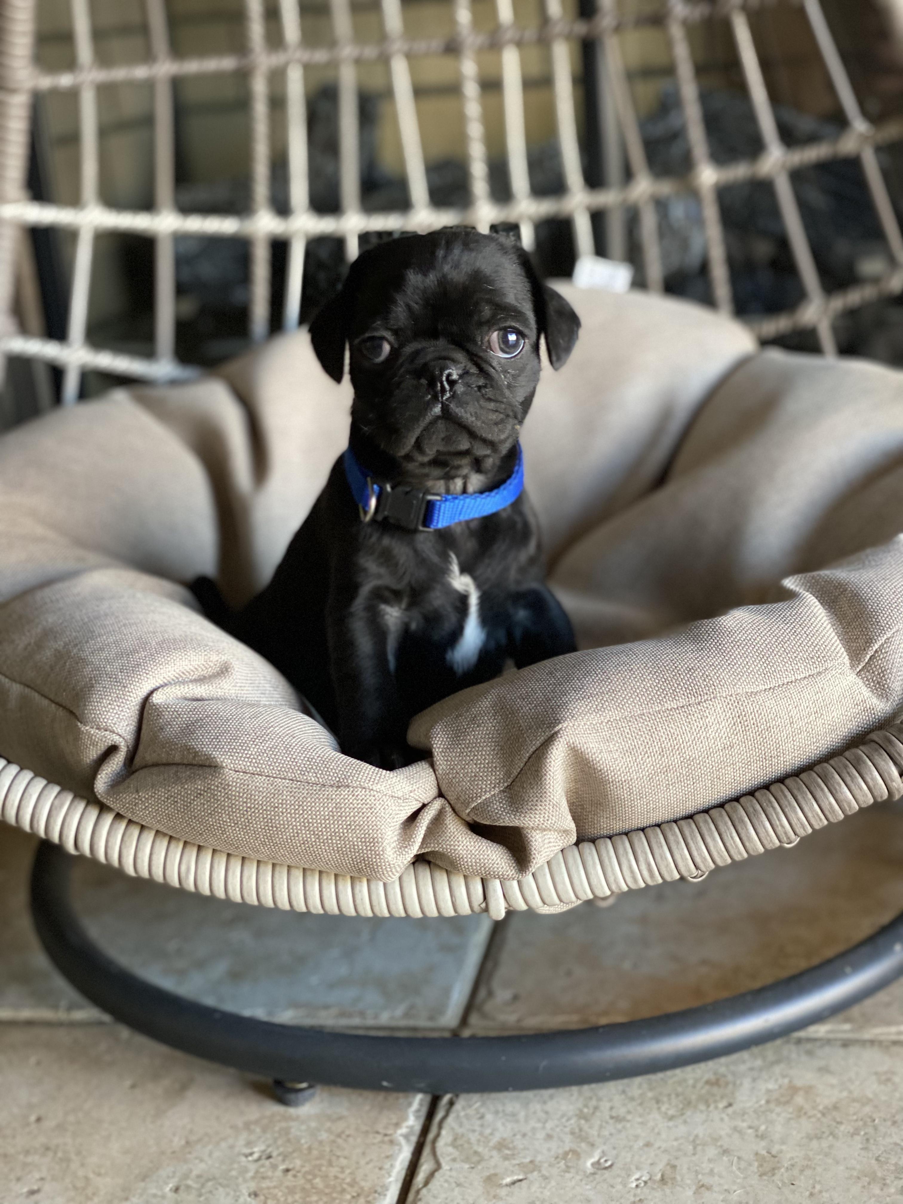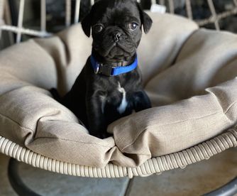 Pablo is a male Pug. Carefully selected as a great representative of his breed, Ram decided to make him part of their program. Ram has passed Good Dog’s screening process, which involved a review of their breeding practices, environment, and the mental and physical health of their dogs.