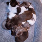 Willy Wilson is the sweetest cuddle bug !! Loves everyone !! He is an AKC registered Chocolate/Tan Longhaired Piebald... No health issues, perfect in everyway... excellent temperament and disposition which he passes on to his pups.