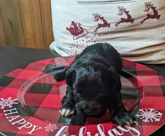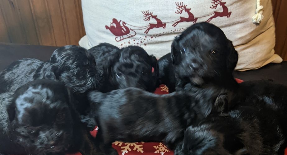 Our puppies include black and white and black. Colors will vary depending on the parent dogs.