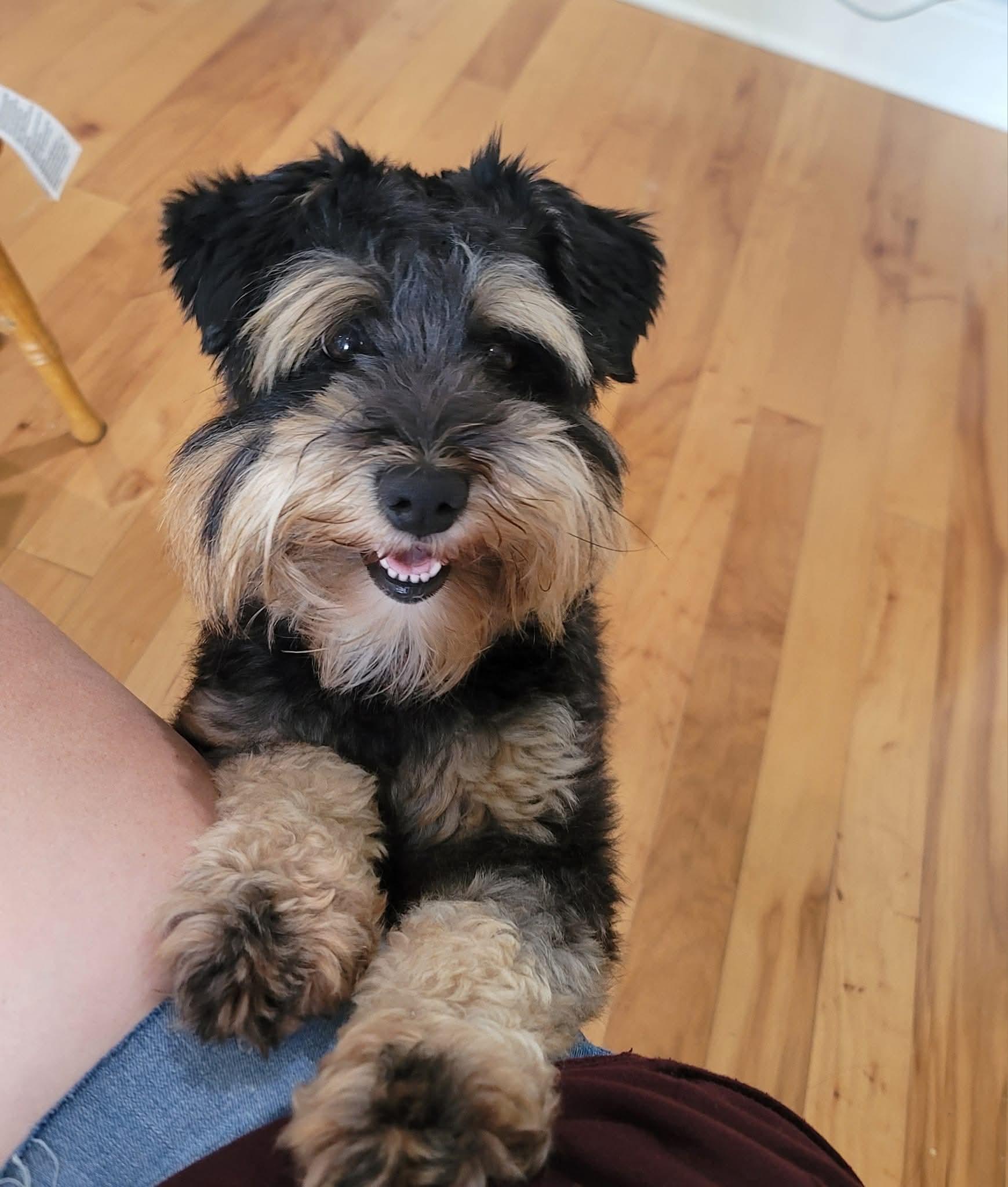 Penny is a female Miniature Schnauzer. Carefully selected as a great representative of her breed, Mel decided to make her part of their program. Mel has passed Good Dog’s screening process, which involved a review of their breeding practices, environment, and the mental and physical health of their dogs.
