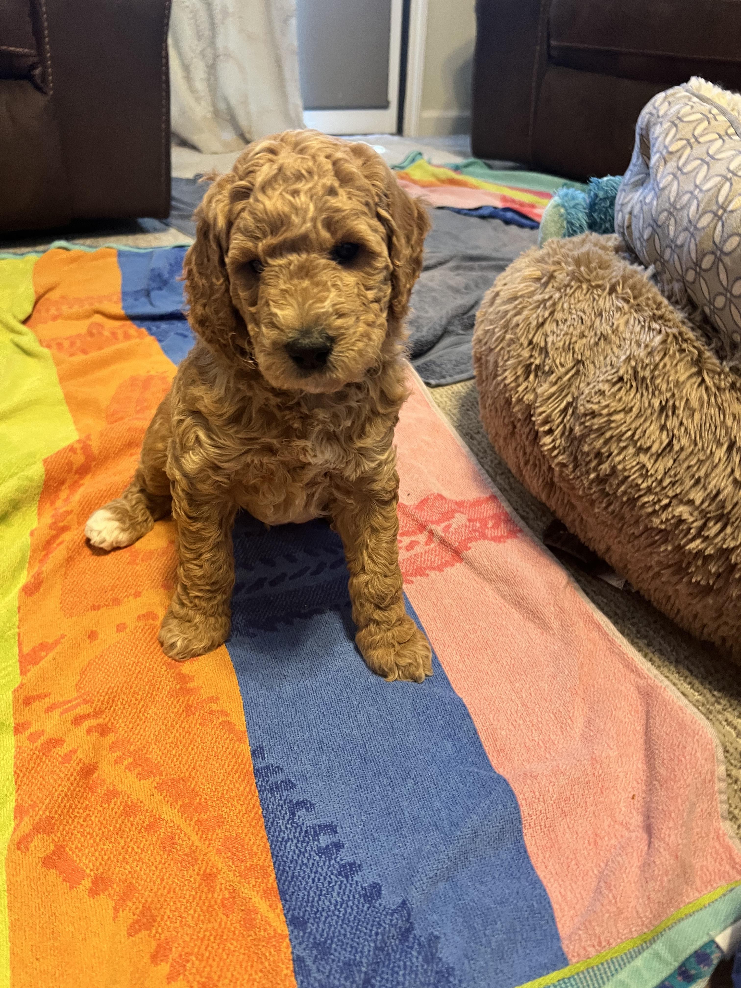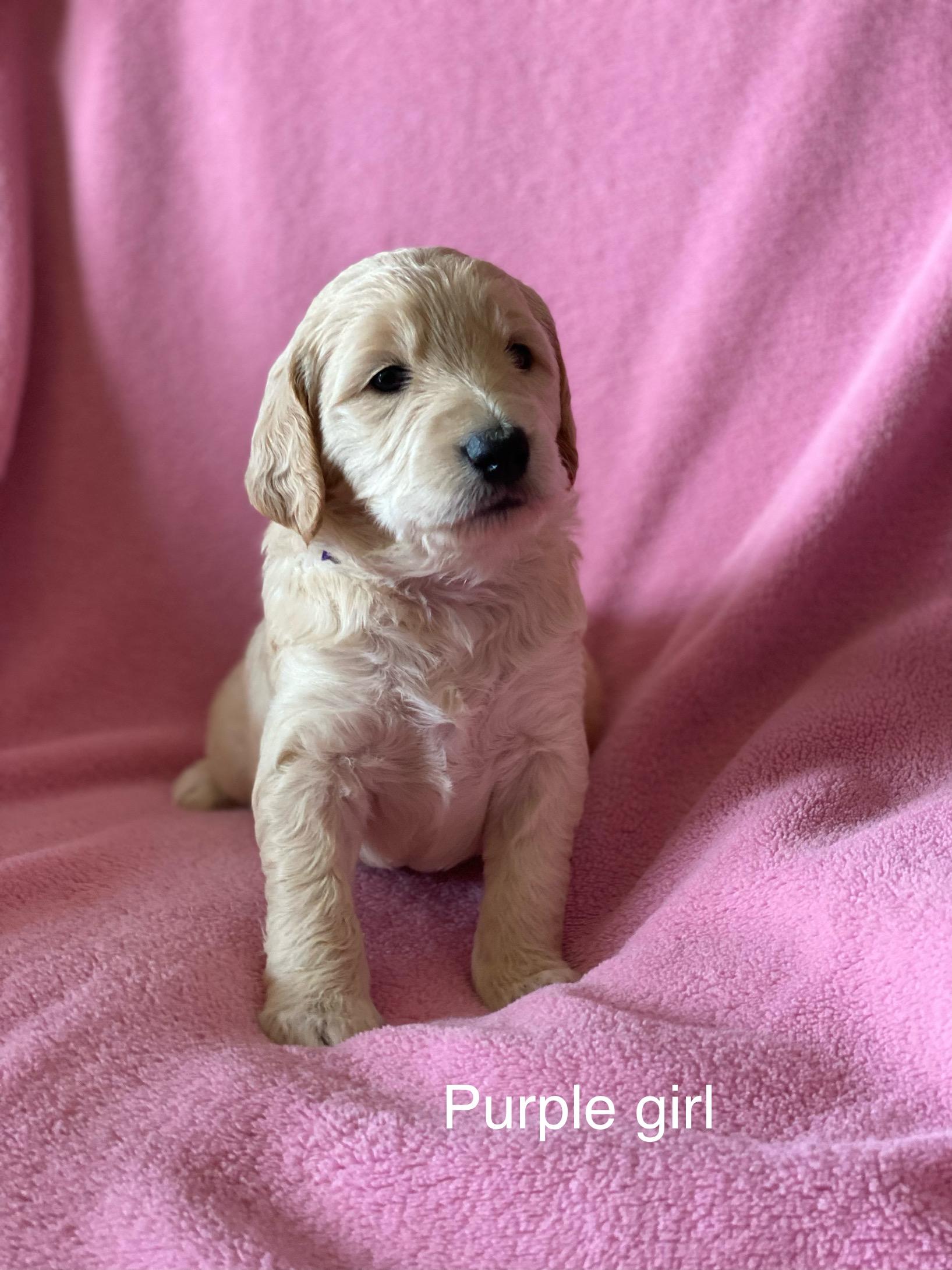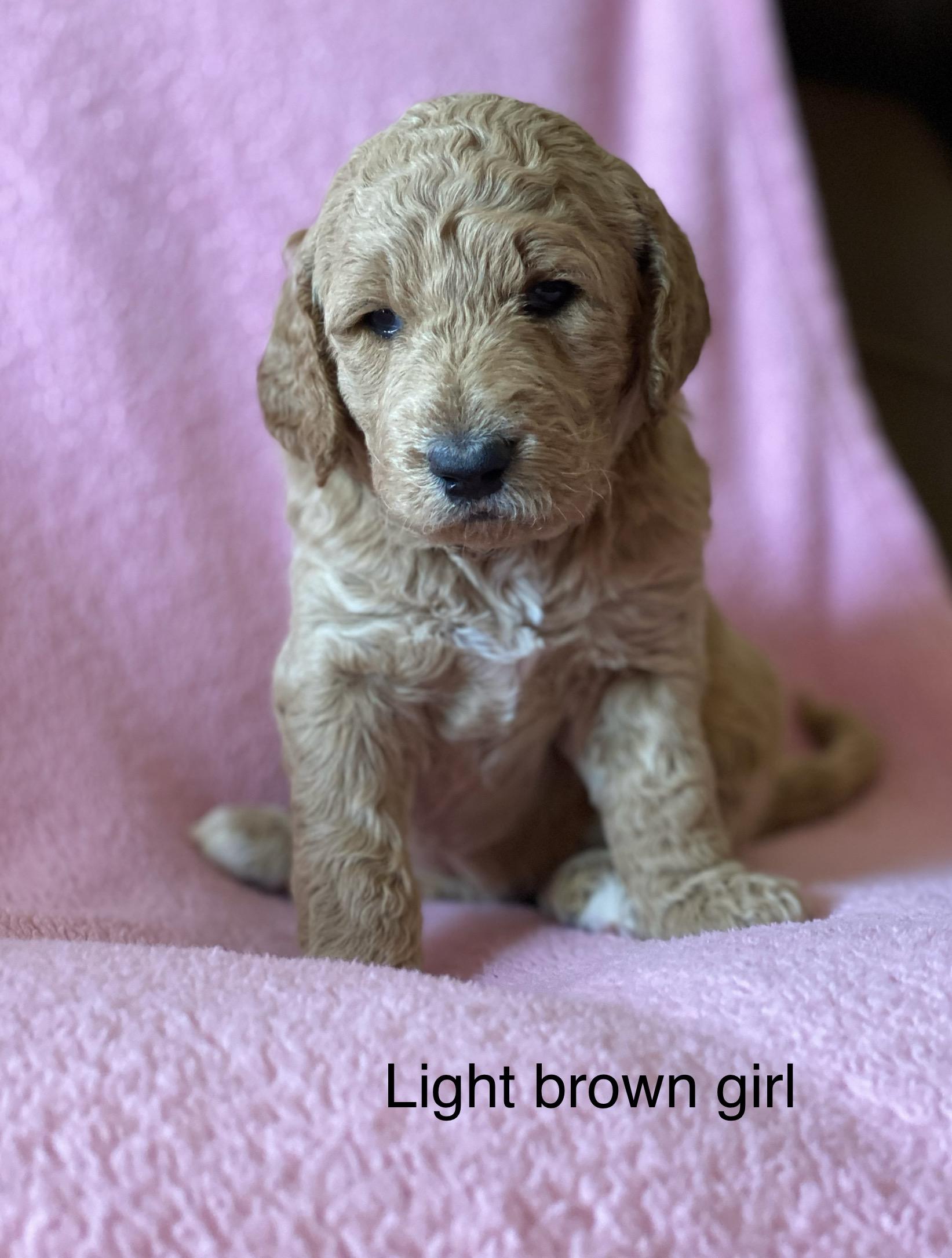 Lacy is a female Goldendoodle. Carefully selected as a great representative of her breed, Brandon and Bridget decided to make her part of their program. Brandon and Bridget has passed Good Dog’s screening process, which involved a review of their breeding practices, environment, and the mental and physical health of their dogs.