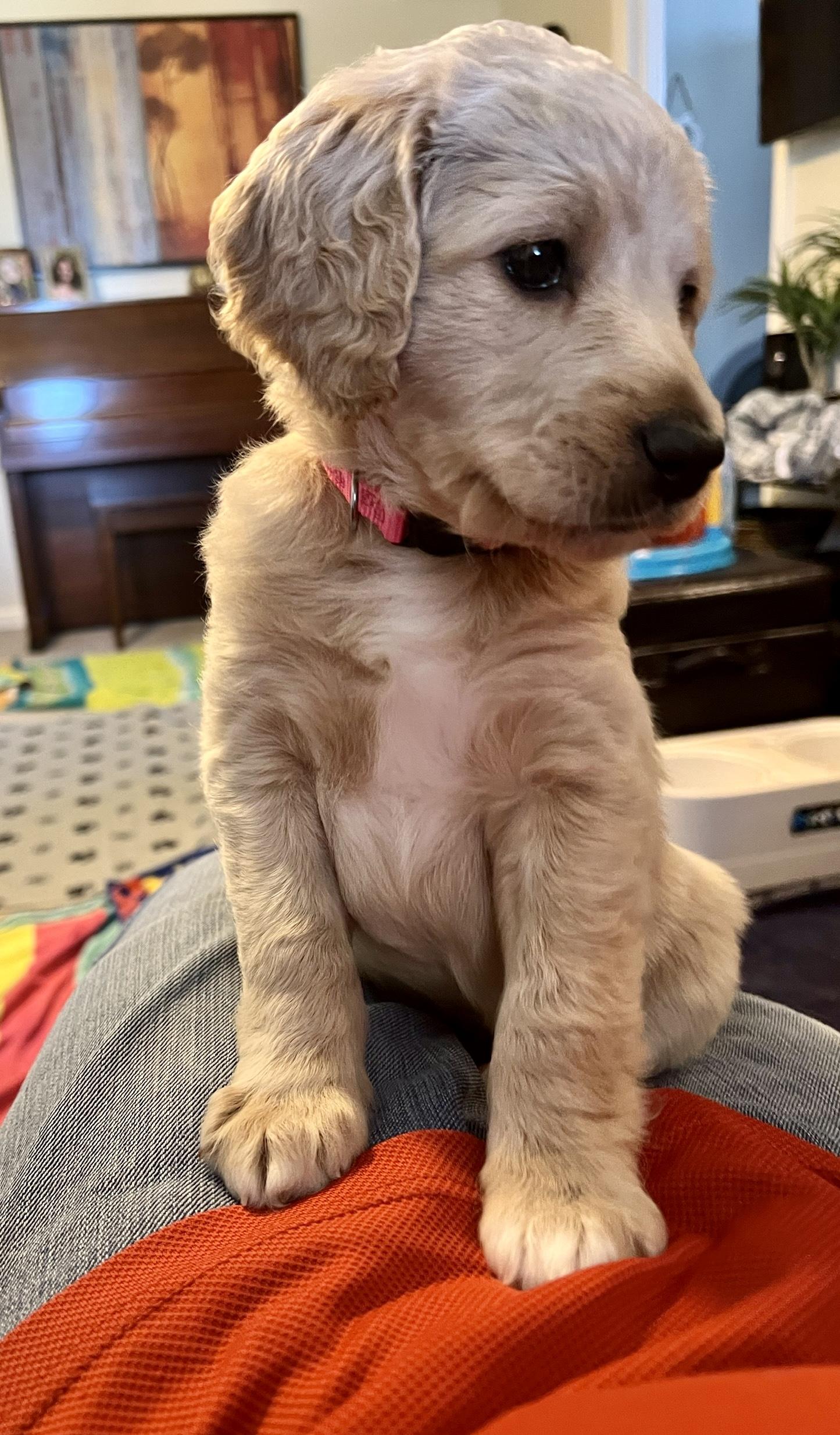 Sam is a male Goldendoodle. Carefully selected as a great representative of his breed, Brandon and Bridget decided to make him part of their program. Brandon and Bridget has passed Good Dog’s screening process, which involved a review of their breeding practices, environment, and the mental and physical health of their dogs.