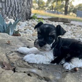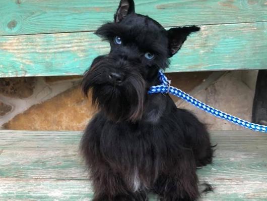 We named our little Mini Schnauzer Jax. We have never had a puppy that fit so perfectly with our family. We have 6 cats and a female 18mo Mini Schnauzer and from day 1 they all get along beautifully, as if he was meant to be! Making it even sweeter is no potty training needed!!!! The two dogs sleep with us 😊