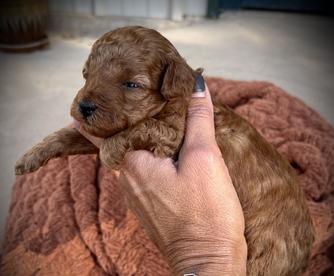 Pickle is an AKC registered poodle ( toy size). Her willingness to please makes her one of the favorites around here. Her babies have been very smart and get the same playful nature Pickle has.