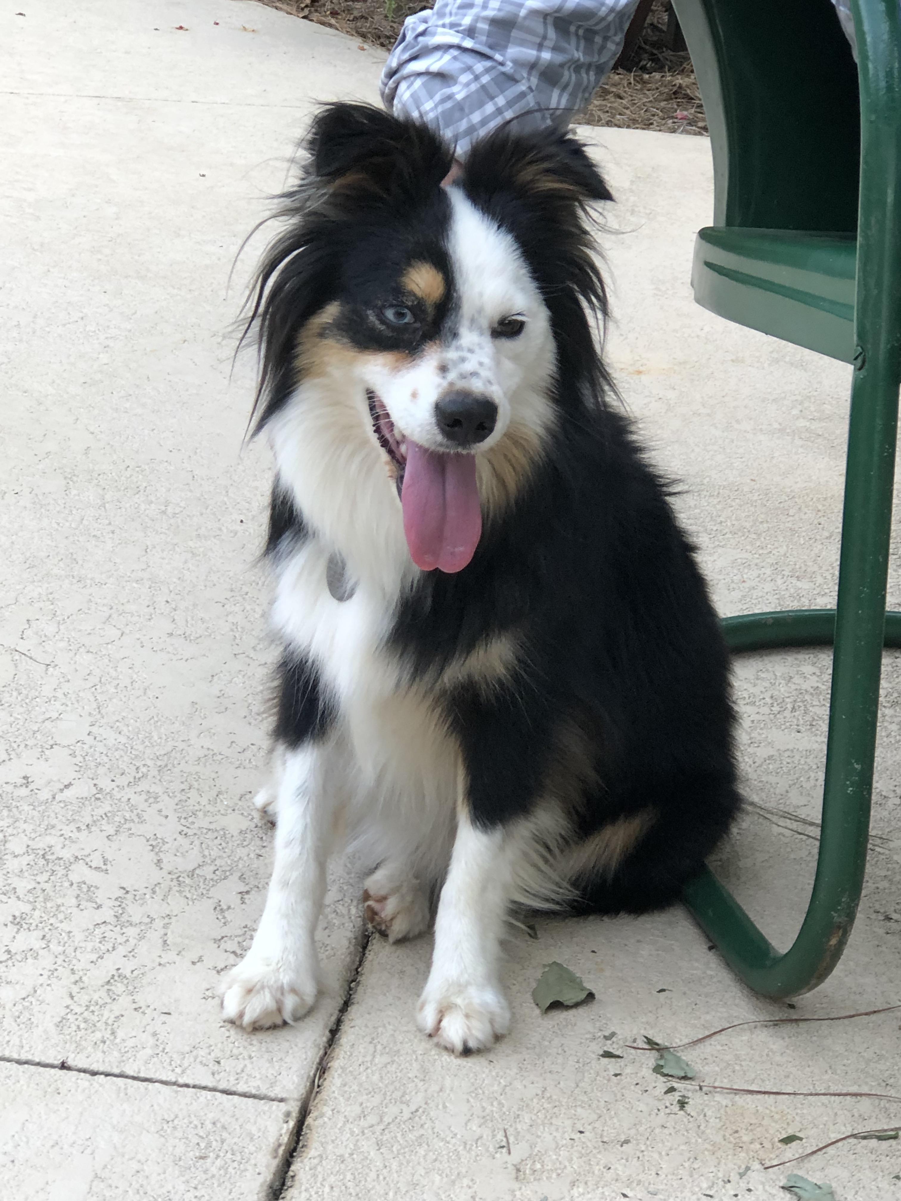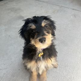 Black tri --12.5" and 19 lb. Toy Australian Shepherd, active and high energy.