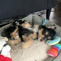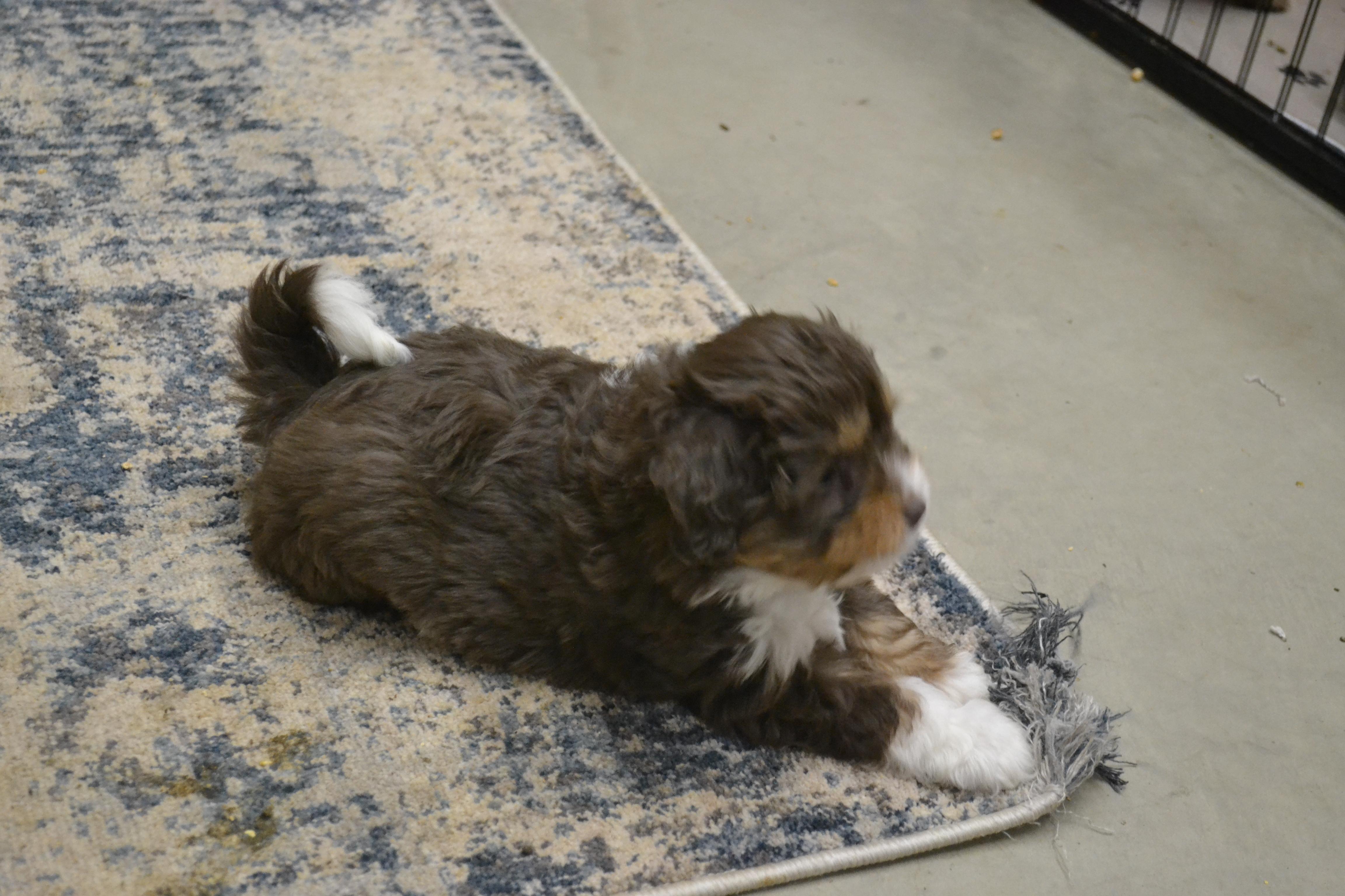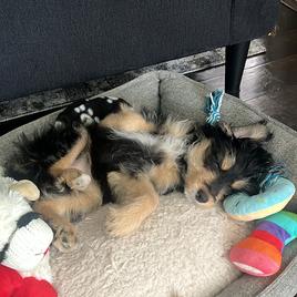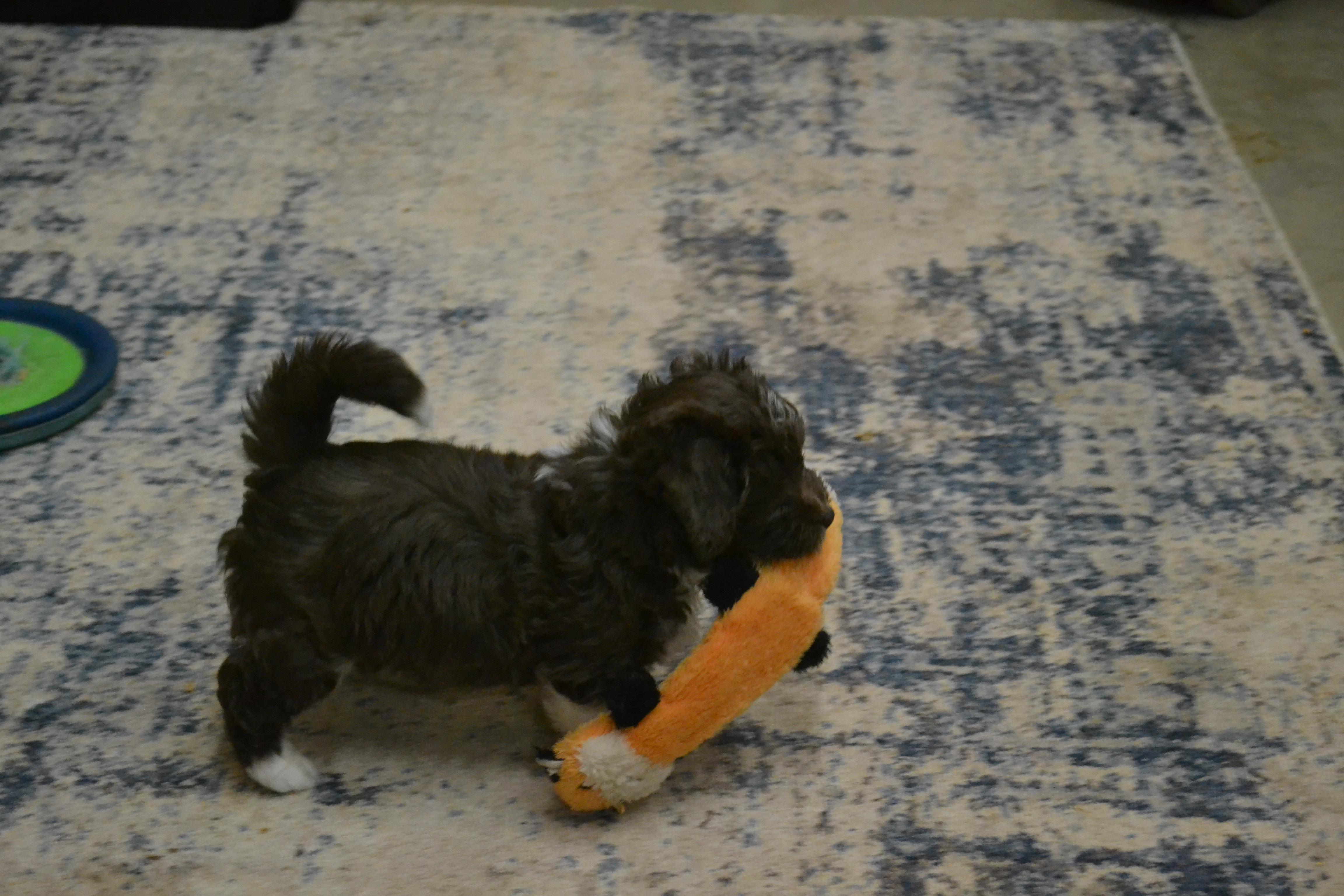 Our new puppy has been wonderful from the start. He has a ton of energy and will play all day. Barbara was so helpful in helping us get him. She explained everything that we needed to know when we picked him up and gave us a goody bag with a blanket with his mom and littermates scent on it and some food to last for a few days. She had all of his info together so that we could give it to our vet when we took him for his first appointment. Our puppy sleeps in a crate beside our bed. He has never whined and sleeps all night. We are really pleased with Barbara and our little boy.