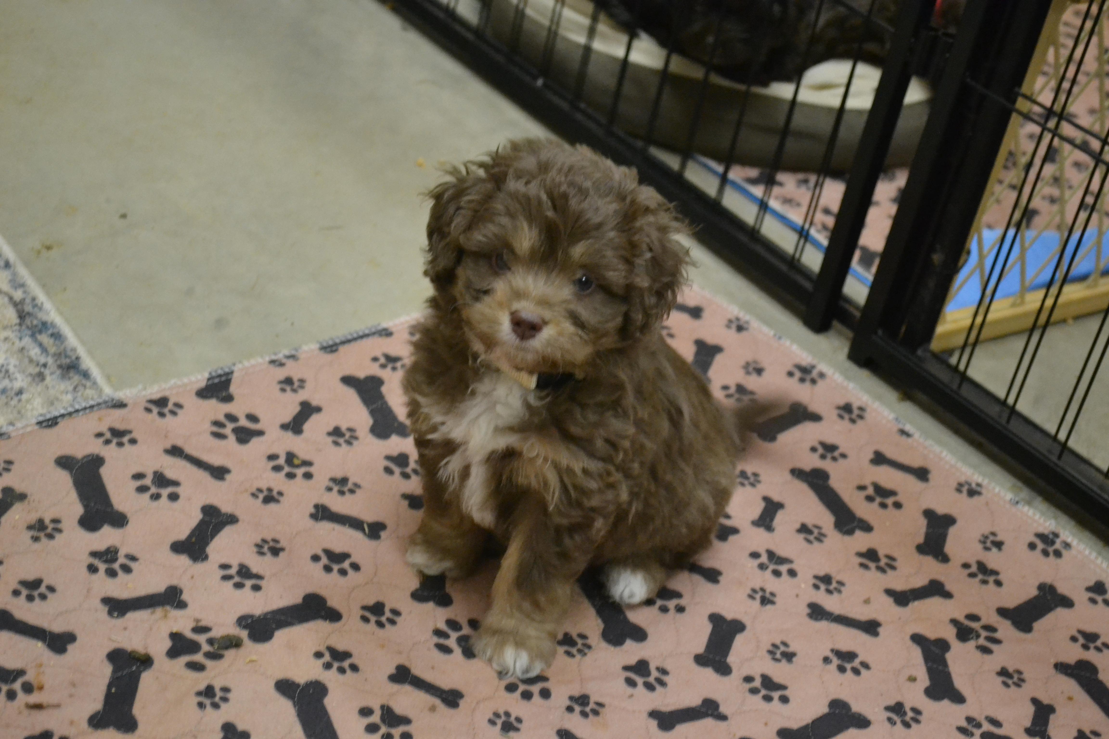 Our Australian Shepherd puppies include black & white and black tri-color. Aussiedoodle puppies include black and white and black tri-color. Poodle puppies include apricot, cream, and red. Colors will vary depending on the parent dogs.