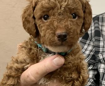 Cheyanne is an apricot/red Miniature Poodle. She is super sweet & enjoys attention. At 12" she is a small miniature with a great Poodle style.