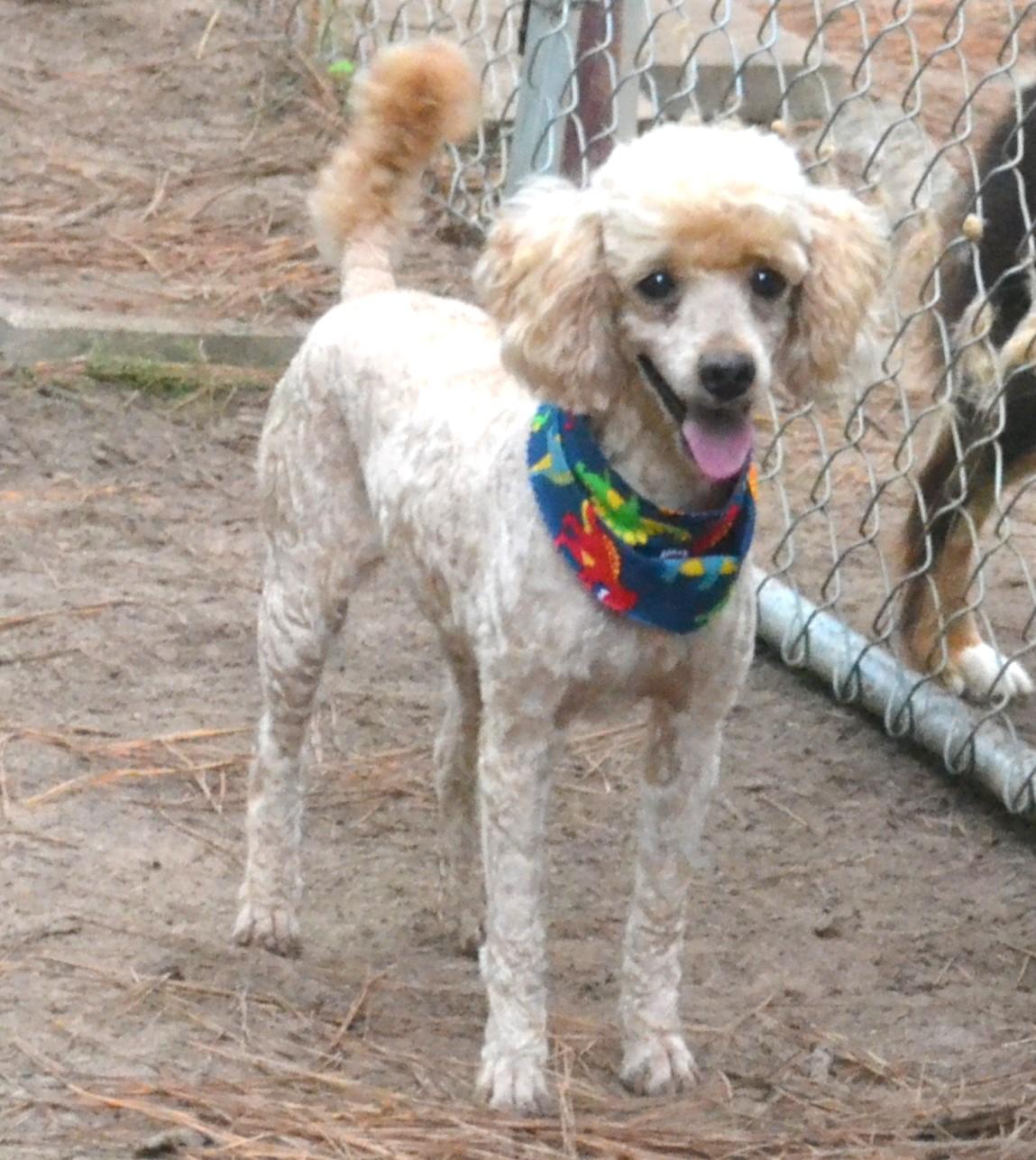 Miniature apricot poodle, 15" tall with minimal white on chest. Scout is genetically clear and is both AKC and CKC registered.
