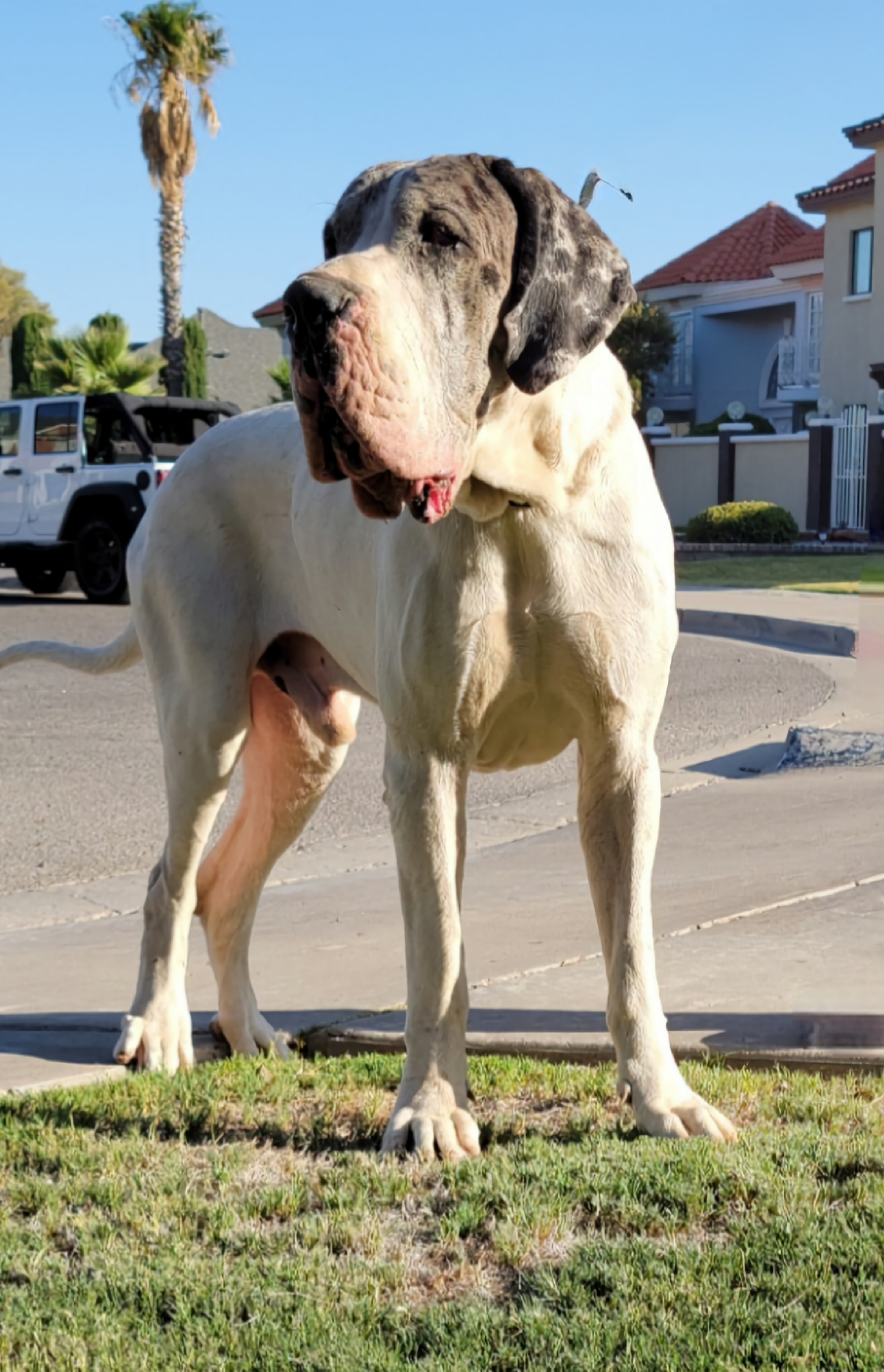 Barnabas is a male Great Dane. Carefully selected as a great representative of his breed, Stephanie decided to make him part of their program. Stephanie has passed Good Dog’s screening process, which involved a review of their breeding practices, environment, and the mental and physical health of their dogs.