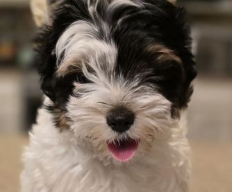 Our puppies include black tan and white and chocolate tan and white. Colors will vary depending on the parent dogs.