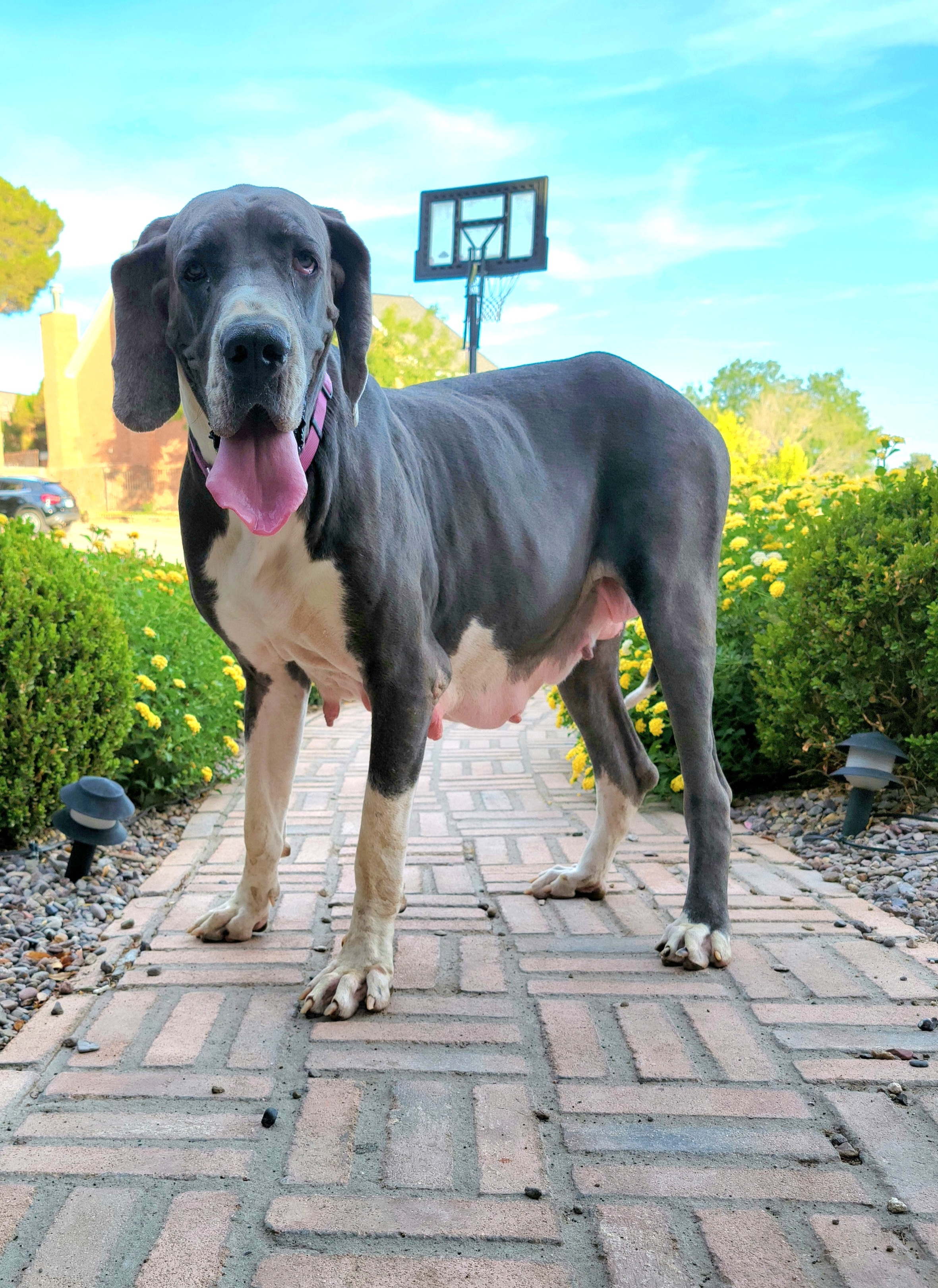 Geisha is a female Great Dane. Carefully selected as a great representative of her breed, Stephanie decided to make her part of their program. Stephanie has passed Good Dog’s screening process, which involved a review of their breeding practices, environment, and the mental and physical health of their dogs.