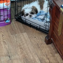 We couldn’t be happier with our puppy! She has been everything Donna said she would be! Very easy to train, healthy and very loving! We had to drive a ways to get her but was ready to pick up on time. She included several items including food and vitamins to get started! She’s a joy!