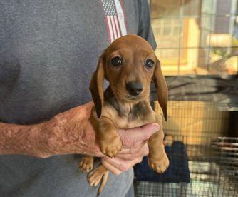 Dachshund puppies are miniature size. Sizes will vary depending on the parent dogs.