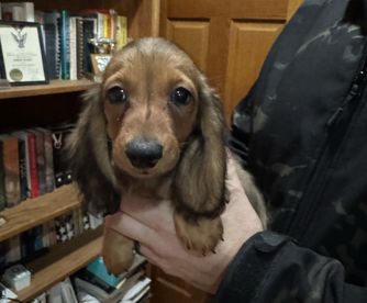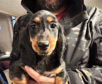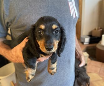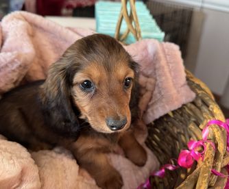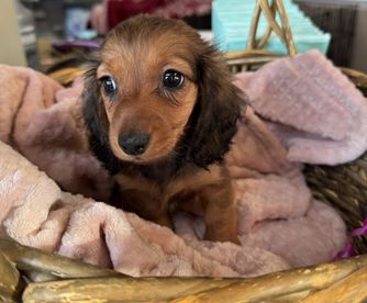 Dachshund puppies include longhaired and smooth coat varieties. Coat types may vary depending on the parent dogs.