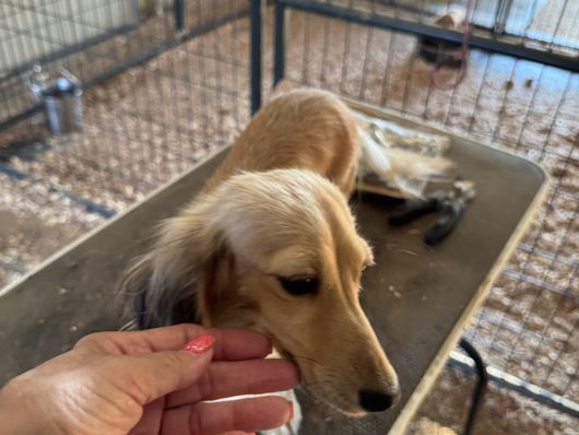Annie is a female Dachshund. Carefully selected as a great representative of her breed, Doreen decided to make her part of their program. Doreen has passed Good Dog’s screening process, which involved a review of their breeding practices, environment, and the mental and physical health of their dogs.