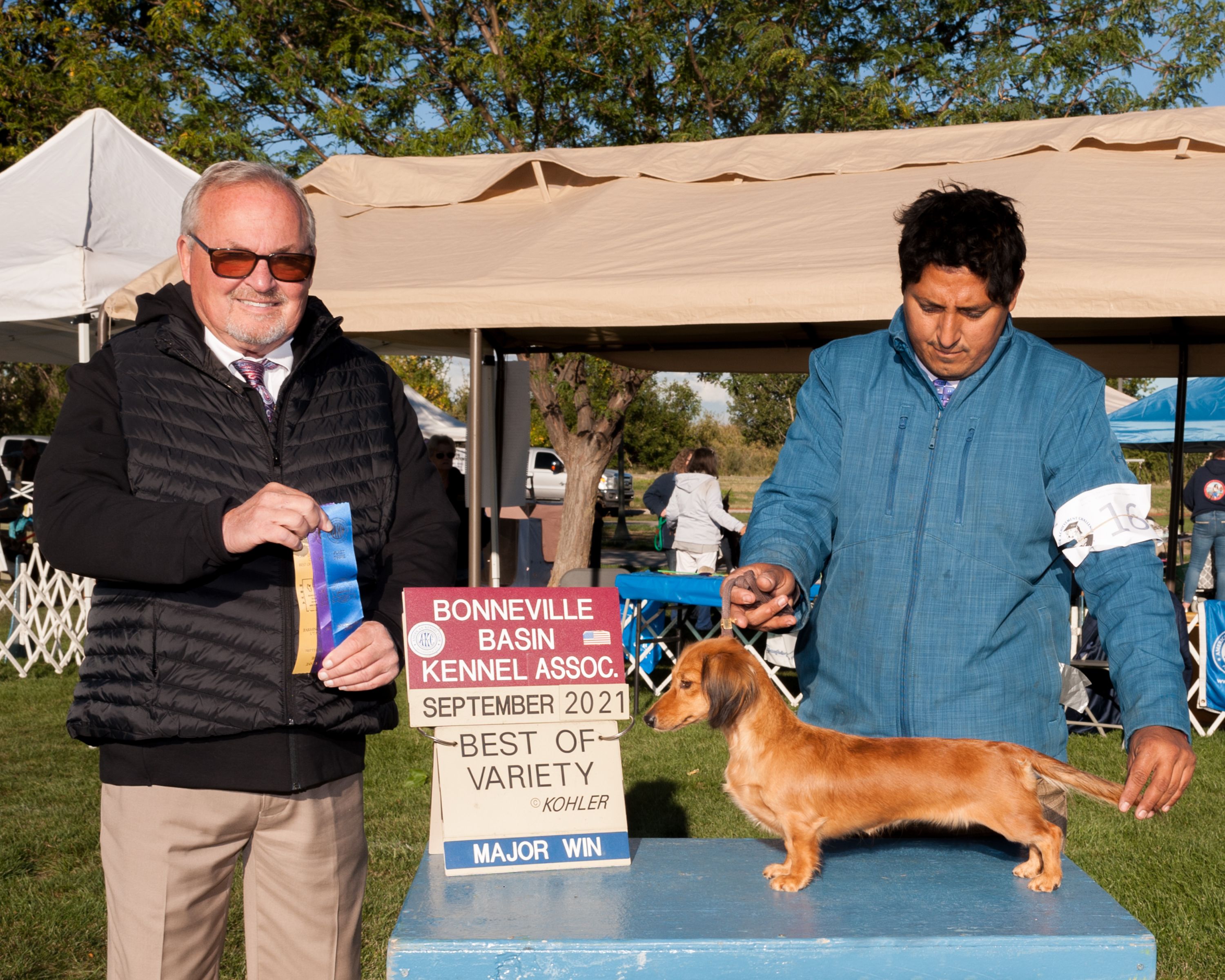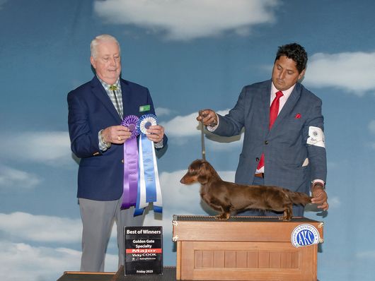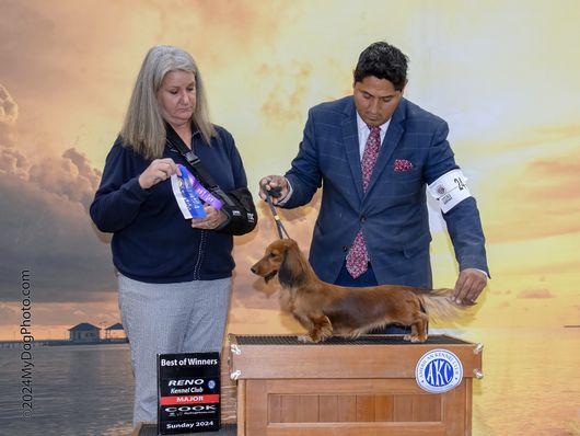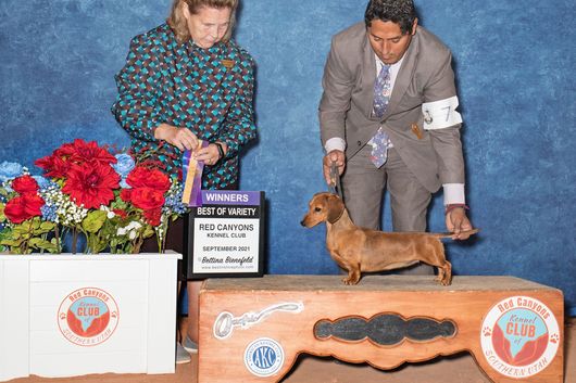 I'm Doreen B., the breeder behind Bacchanal Kennel/Ranch located in Gavilan Hills, CA. We are professional handlers of Dachshunds. It is our goal to produce healthy, show-quality puppies with wonderful temperaments. It is our goal to produce healthy, show-quality puppies with wonderful temperaments. With this in mind, we consider a variety of factors when making breeding decisions, and we only breed dogs that are exemplary representations of the standard. We provide each of our dogs and puppies with the best care, and we ensure each pup that we don’t keep goes to a responsible, loving home.