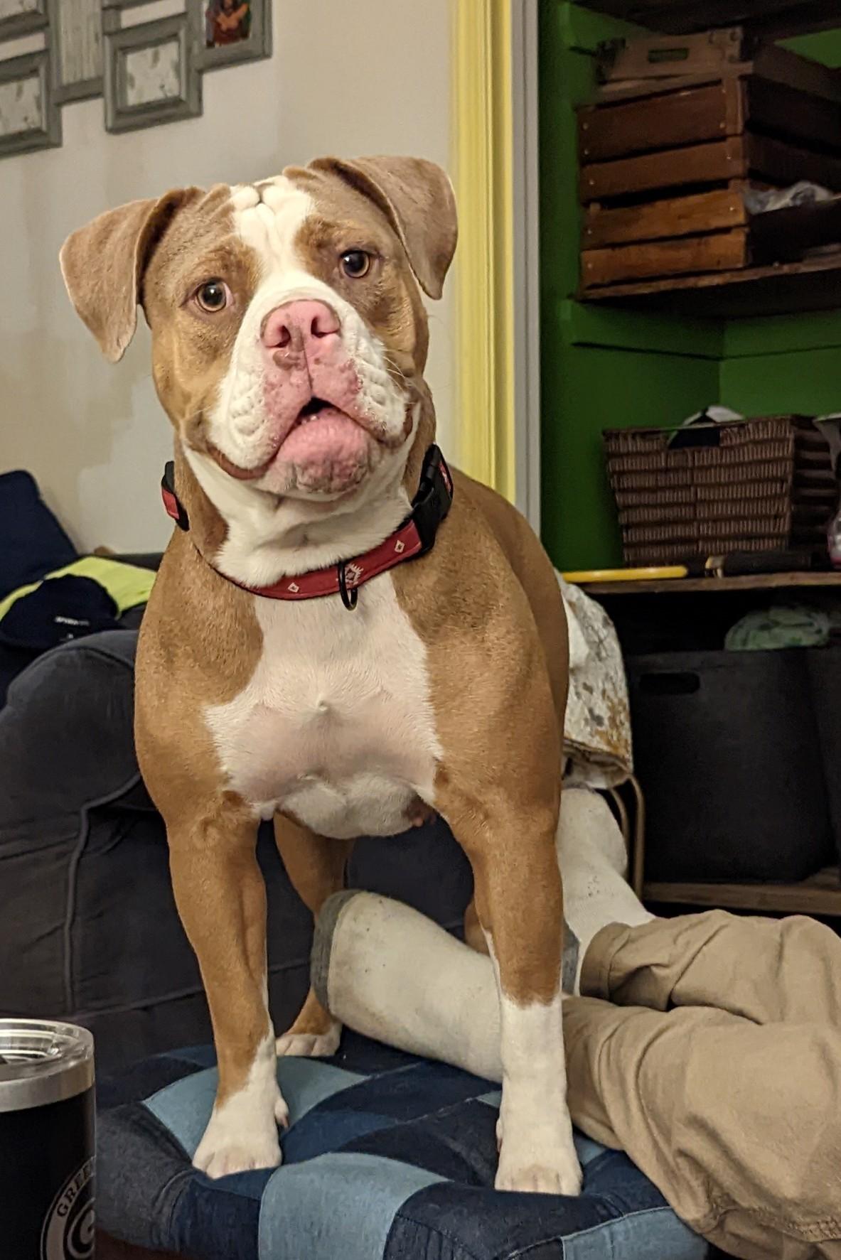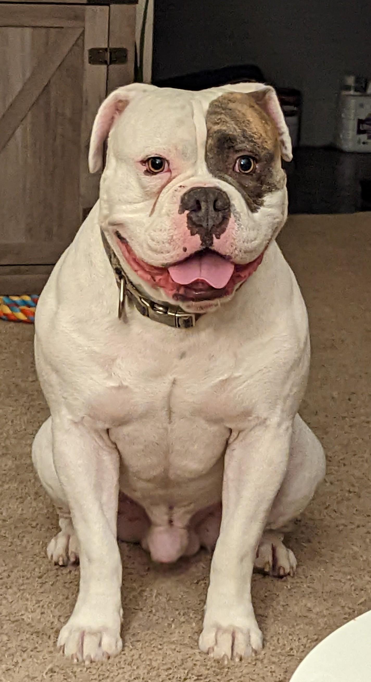 Arlo is a male Olde English Bulldogge. Carefully selected as a great representative of his breed, Rebecca decided to make him part of their program. Rebecca has passed Good Dog’s screening process, which involved a review of their breeding practices, environment, and the mental and physical health of their dogs.